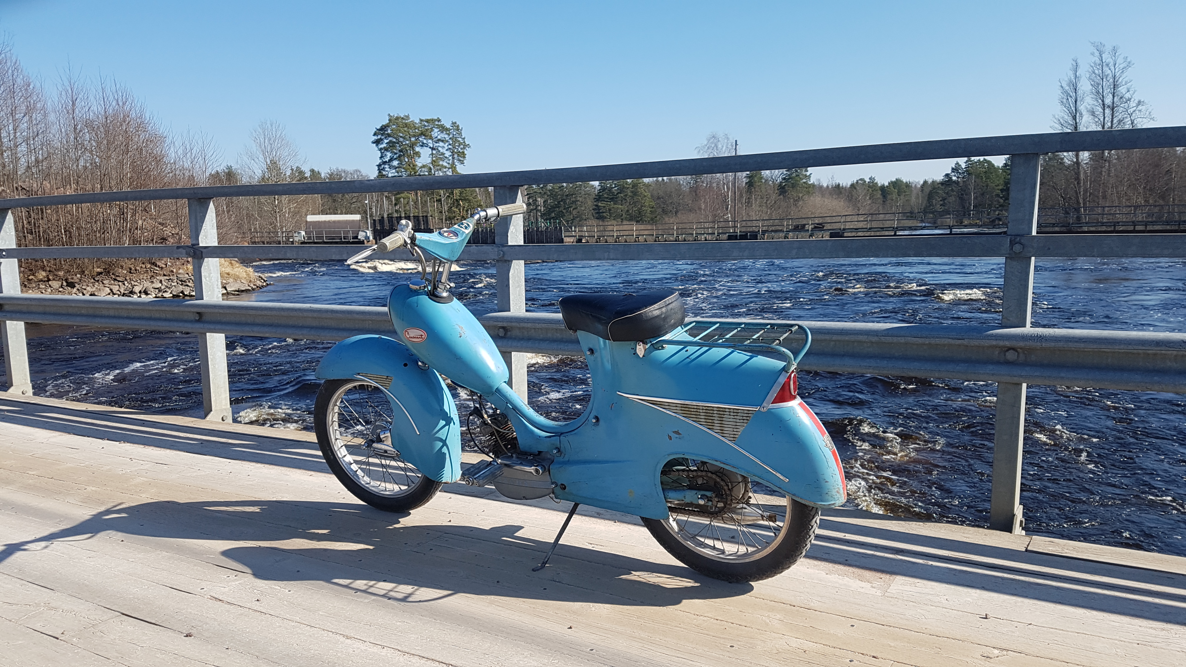 Har under vintern fått tillbaka lusten att åka och meka moppe igen och detta har resulterat i att min Crescent 2000 fick en helrenovering av motorn och idag blev det den första långturen. Härligt!!