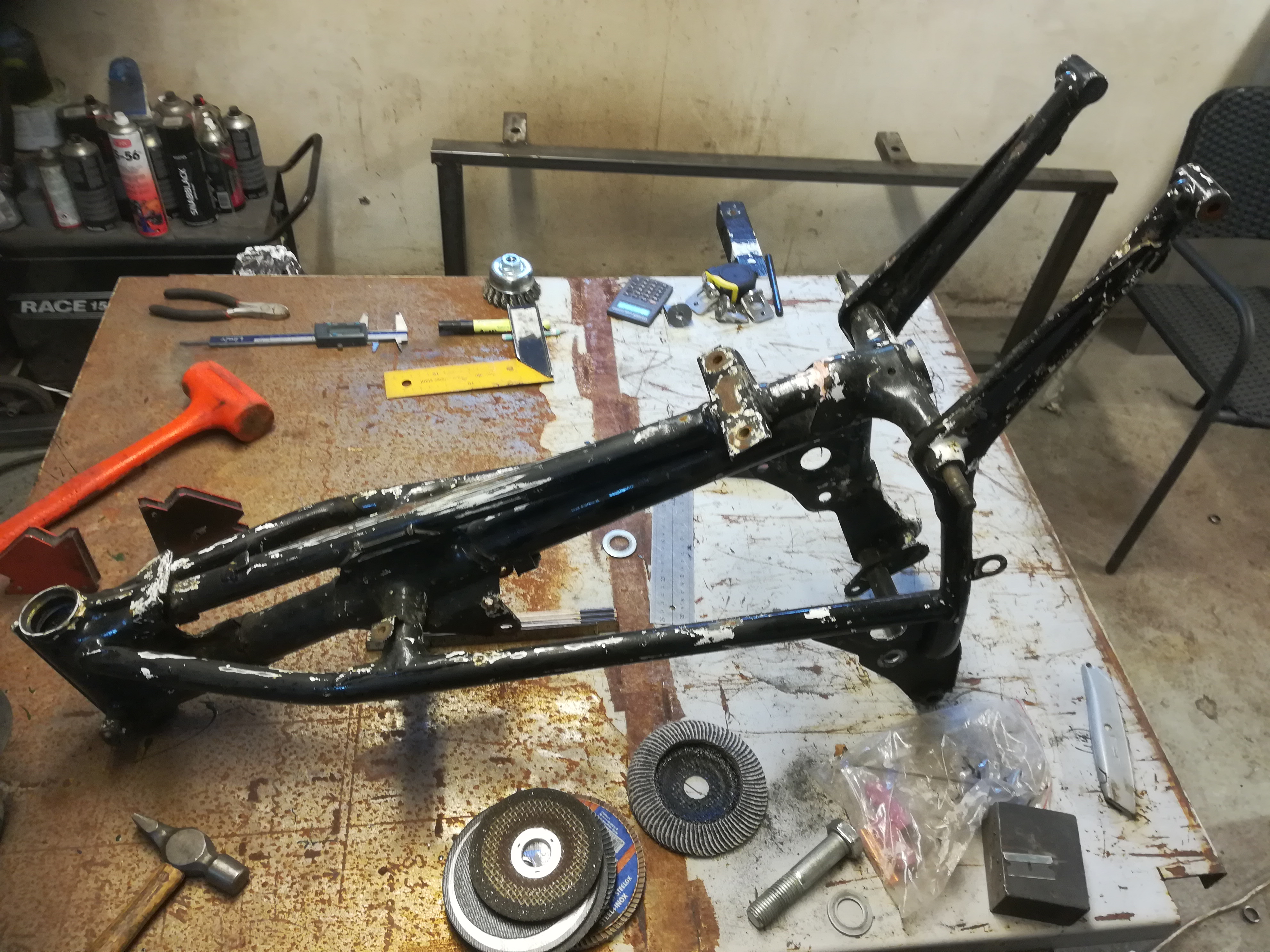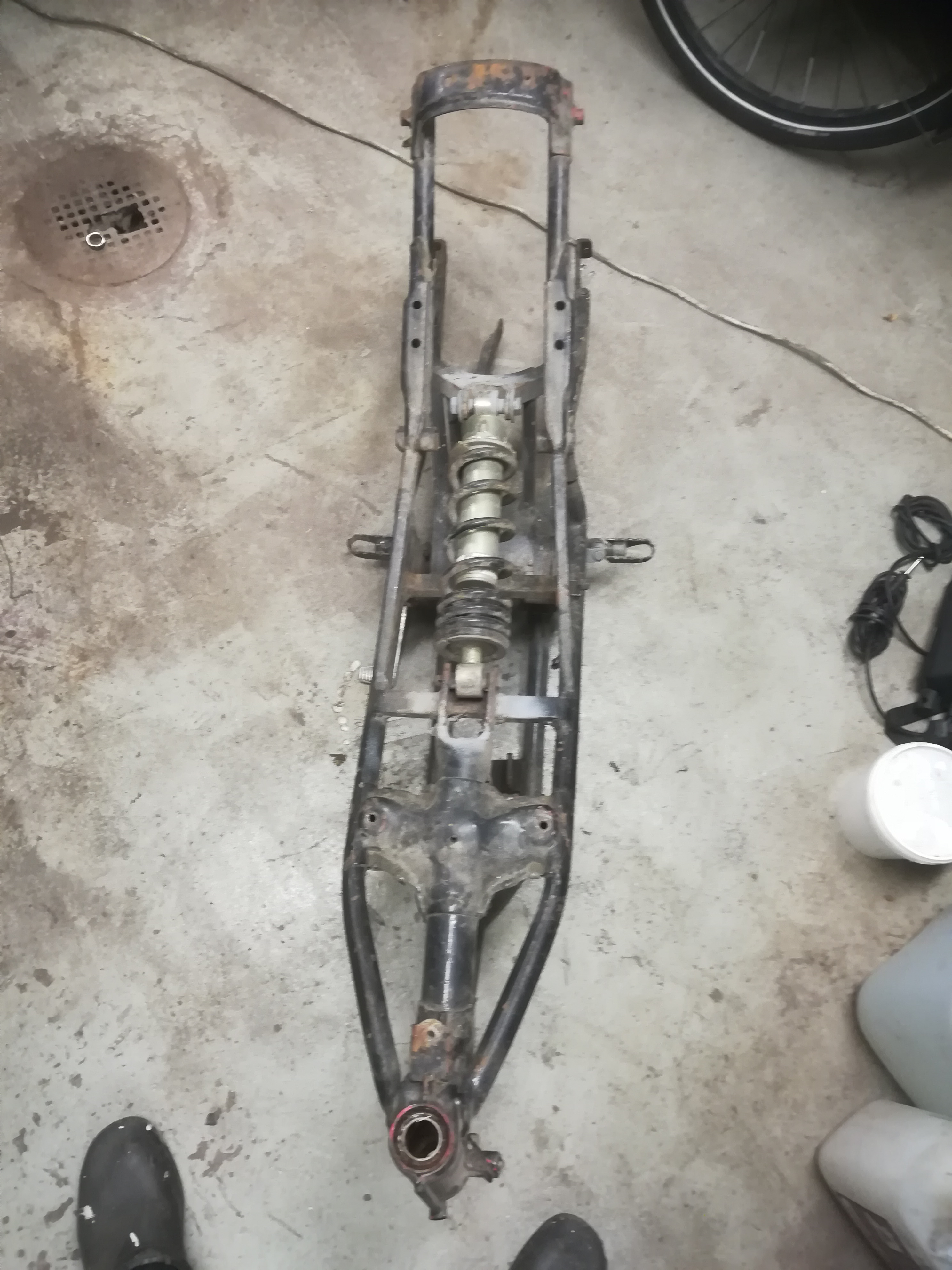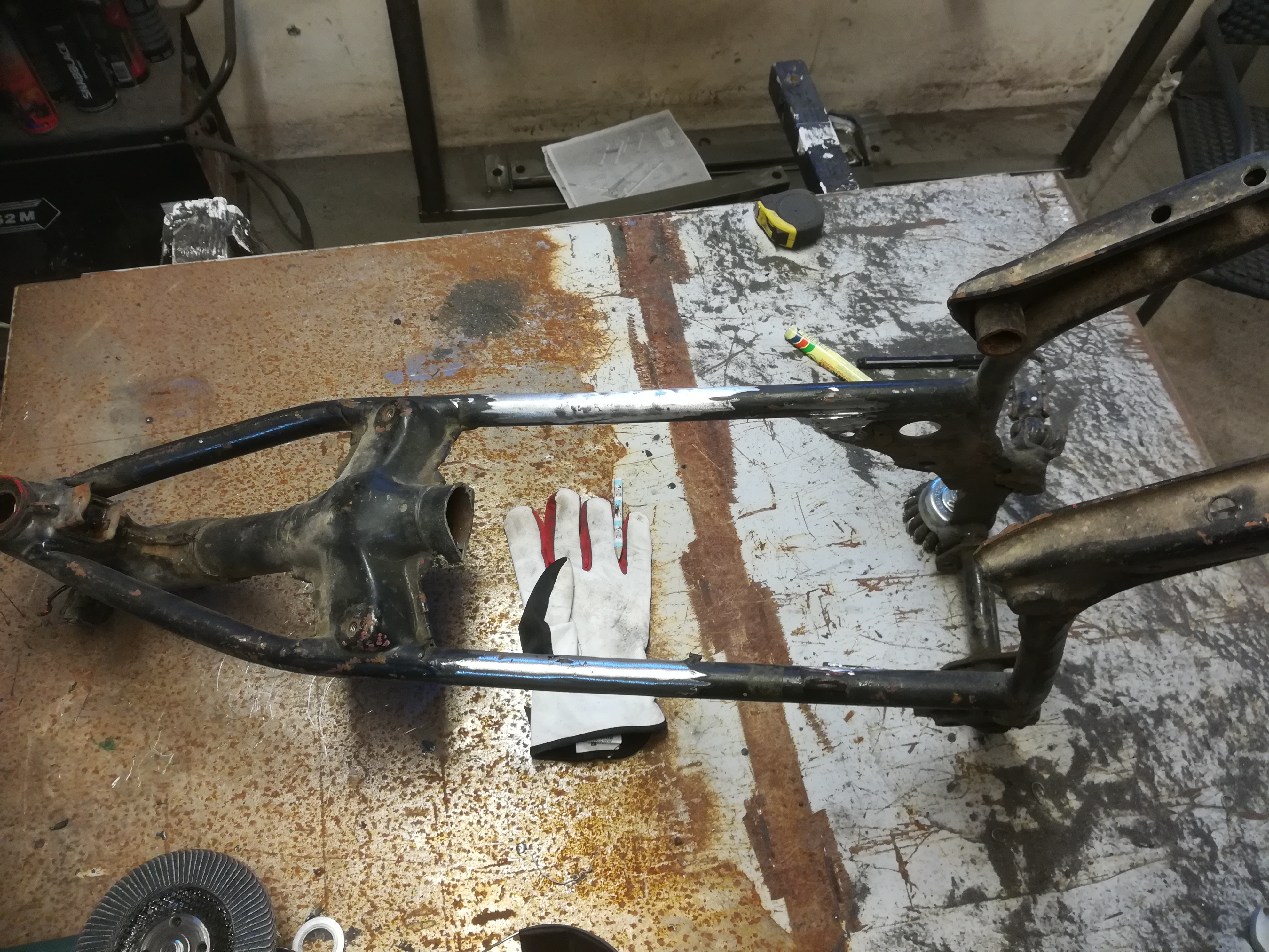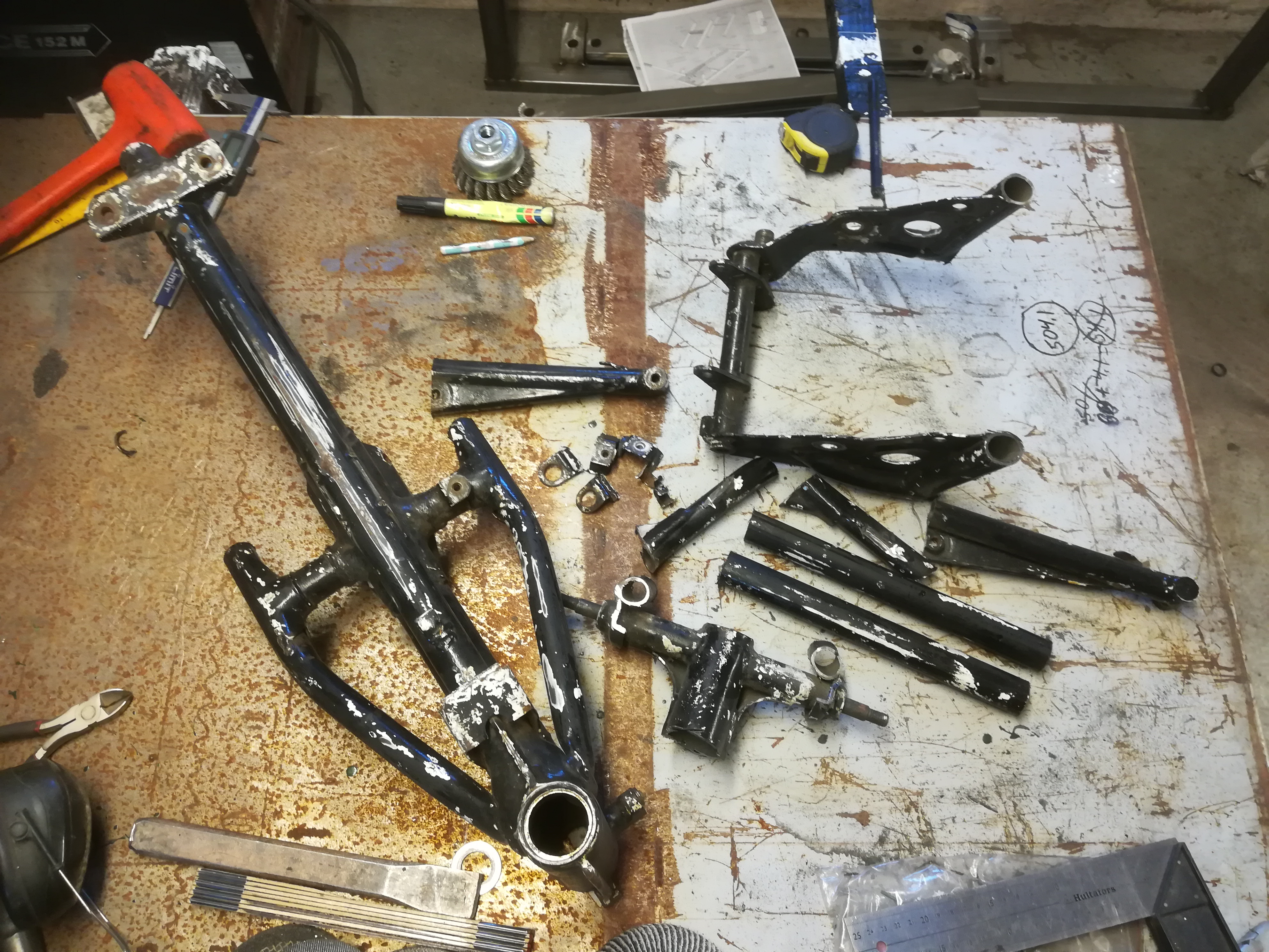 Nu ska grejerna blästras av sen börjar pusslet med att bygga upp ramen igen.