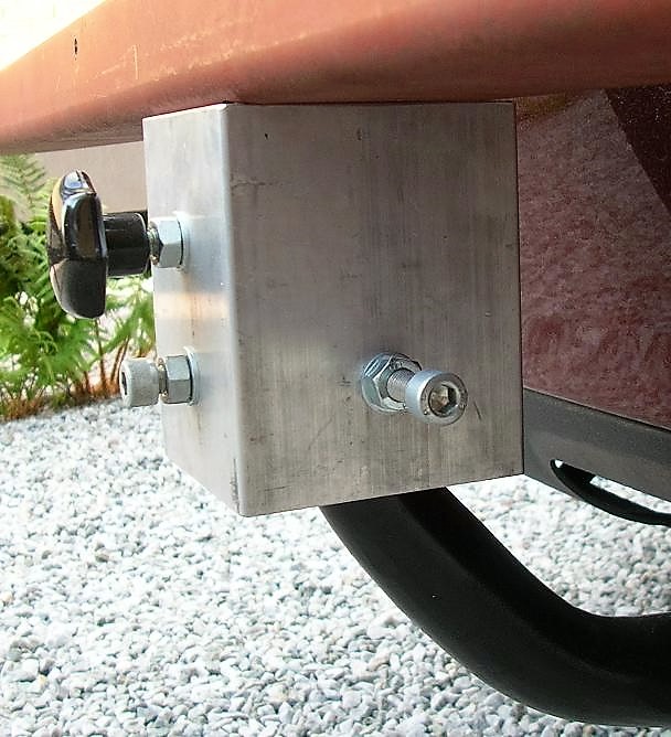 En aluminiumklump om 80 x 80 x 100 mm med ett 50 mm hål utgör fästet mot dragkulan.