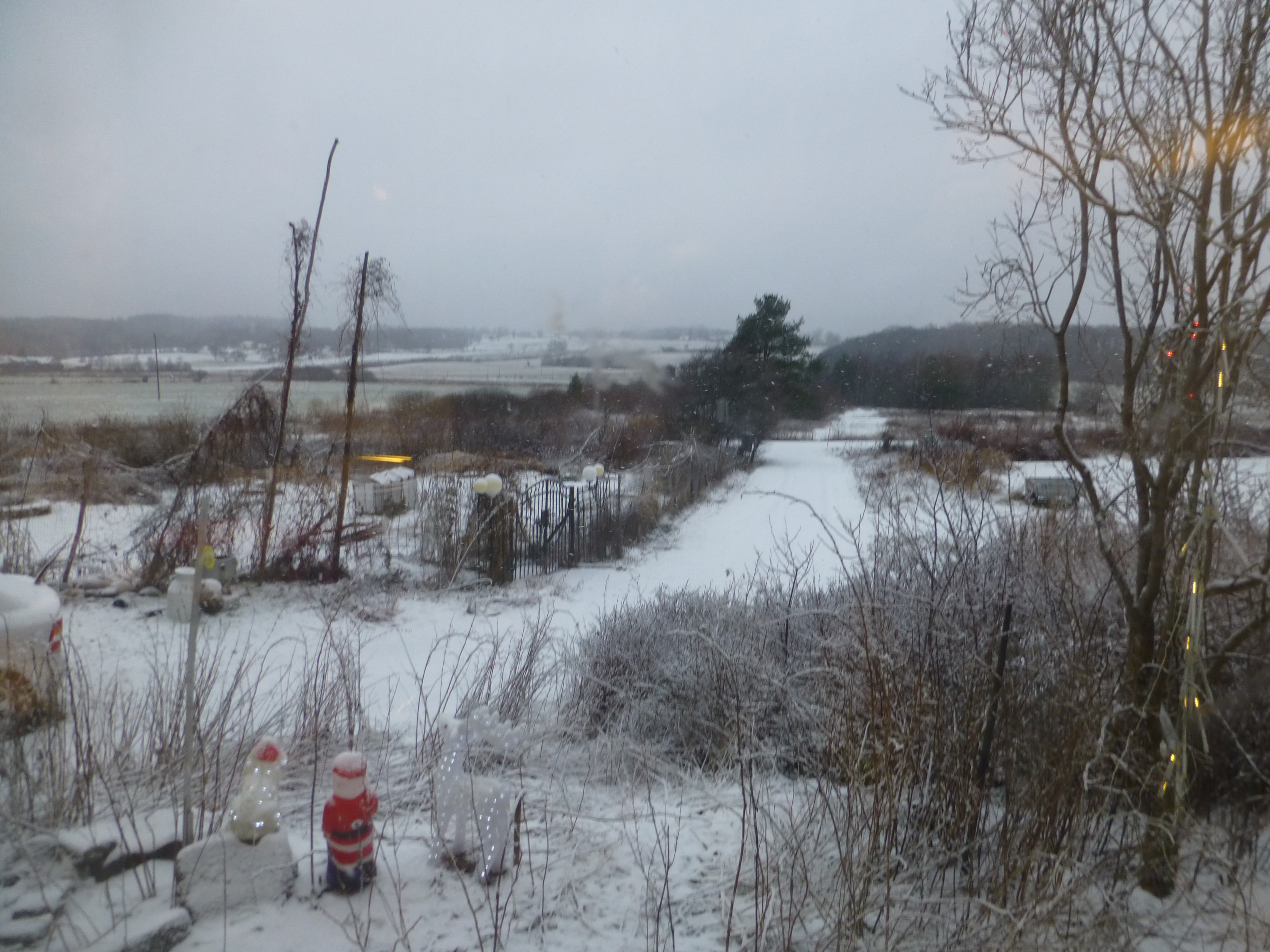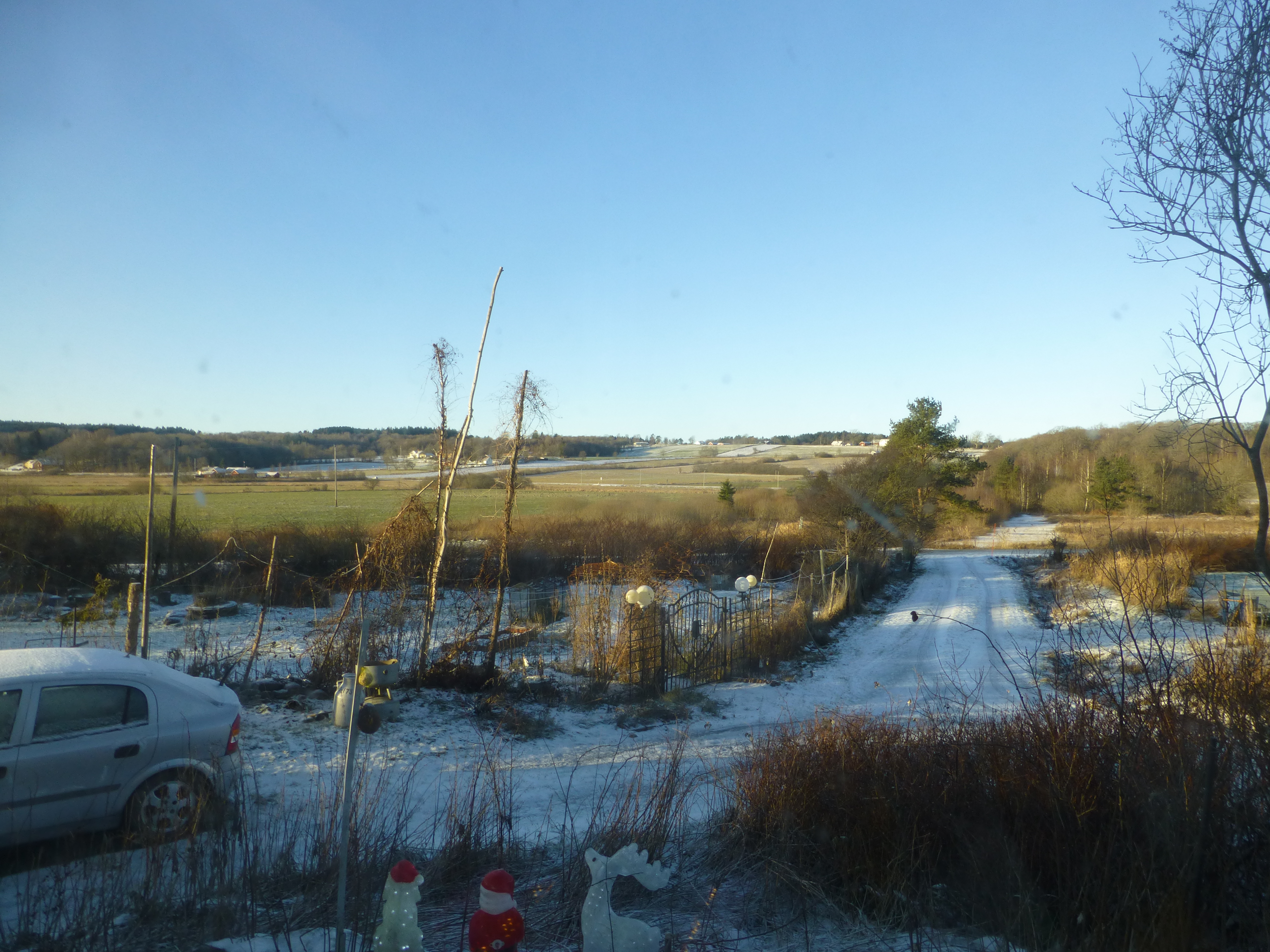 Efter stormen blev det kallt och en decimeter snö. Men efter regn hela dagen i går är det grönt där ute igen :D 5 grader varmt och blåst idag.
