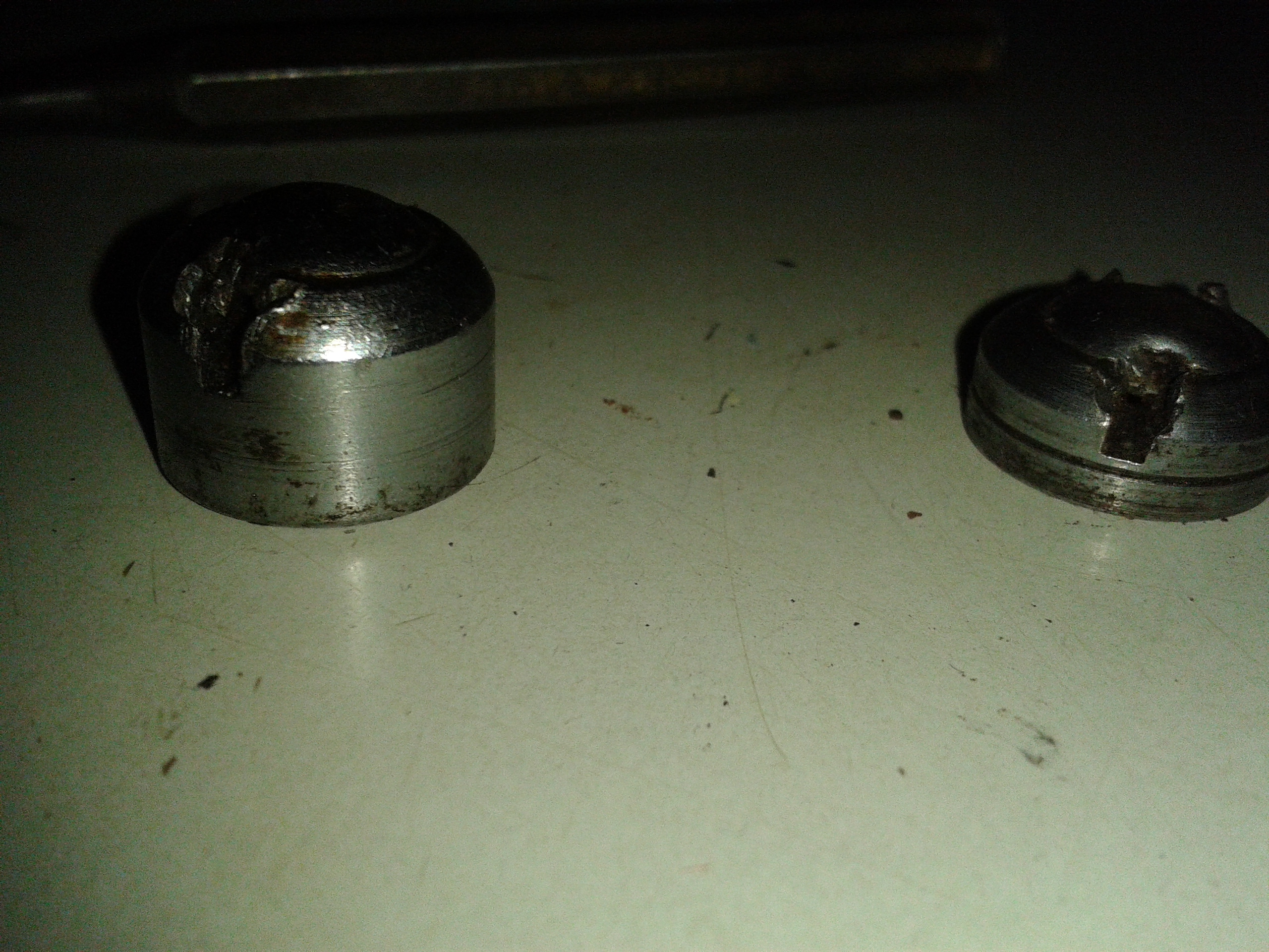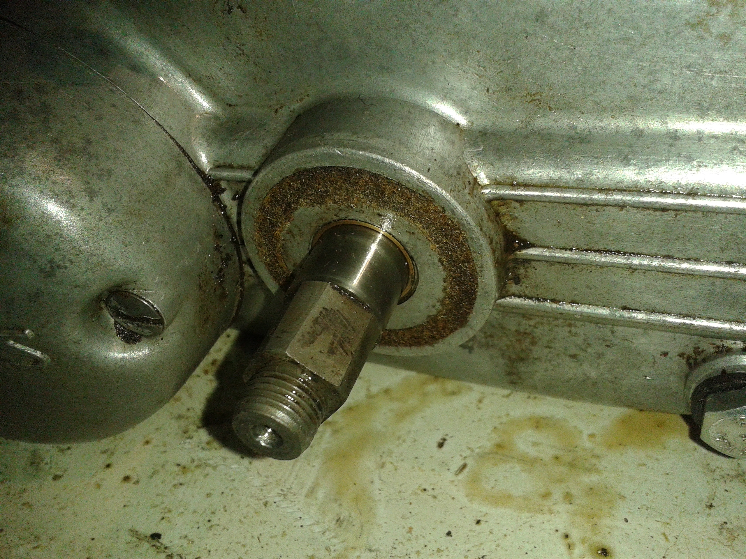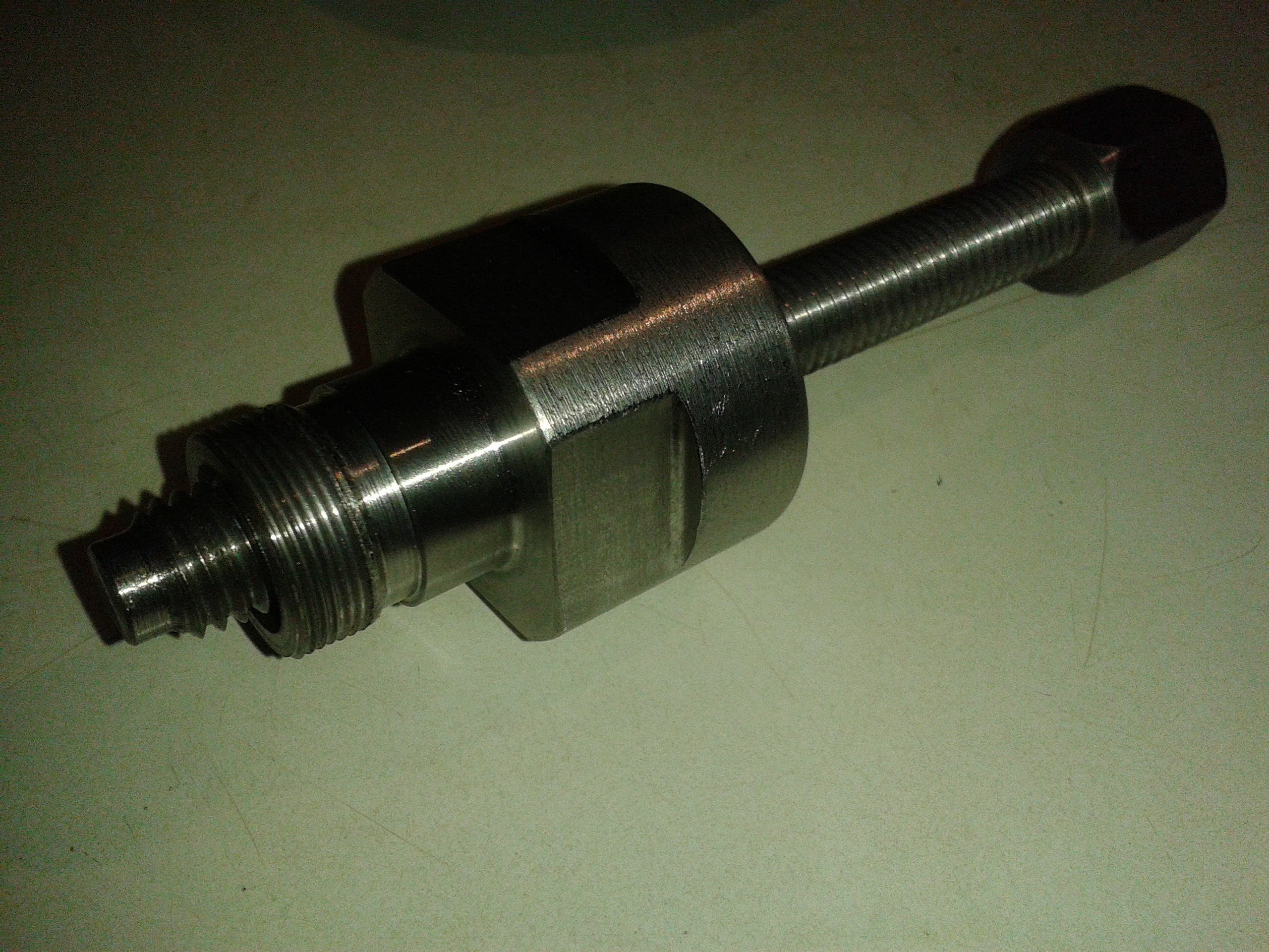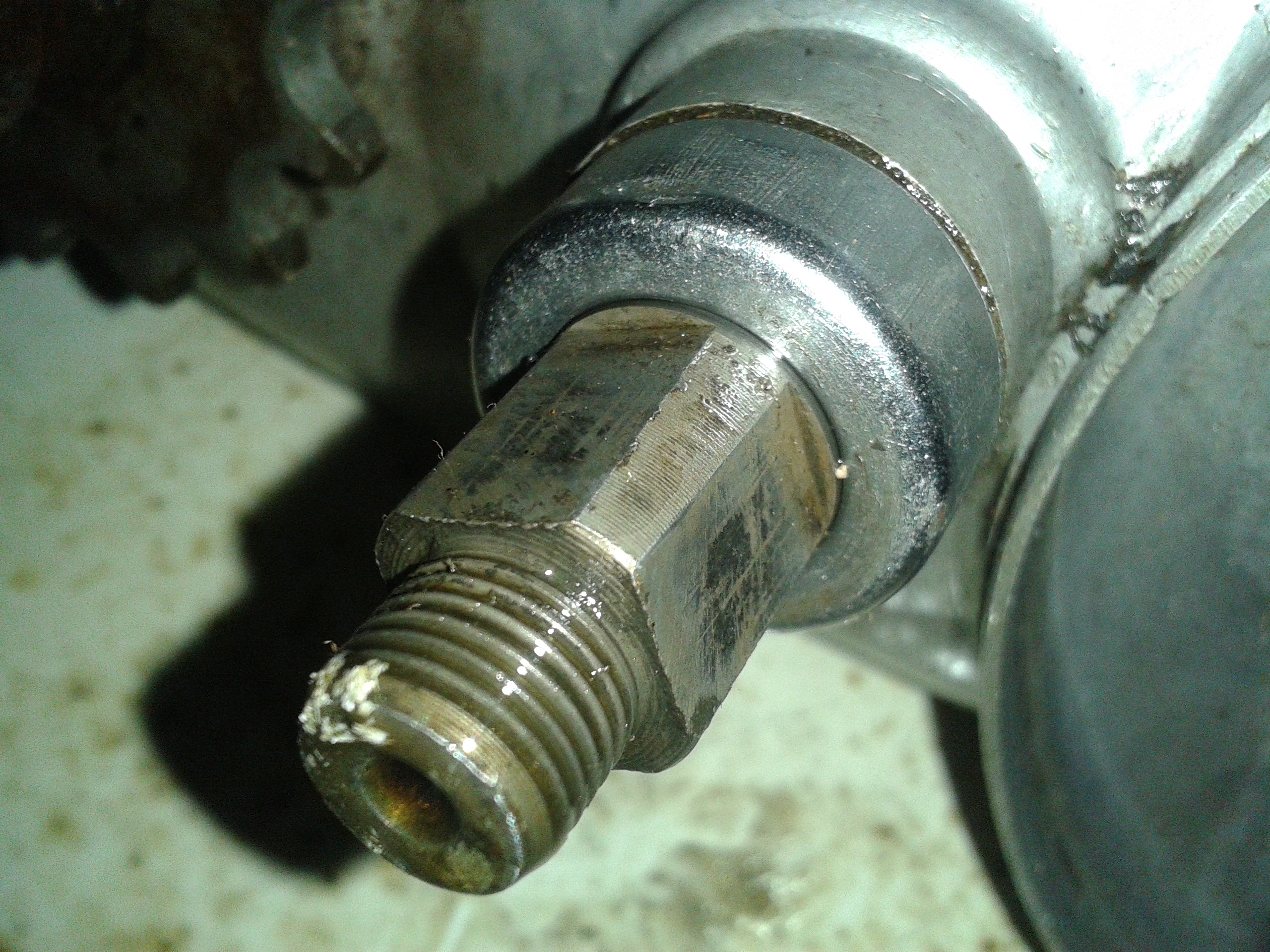 men här är några lite sådär bra bilder på hur det ser ut: Jag har fortfarande inte fått bort den på andra sidan, har provat ett 20 tal olika avdragare av alla möjliga dimensioner och gängstigningar, men ingen som passat än så länge...