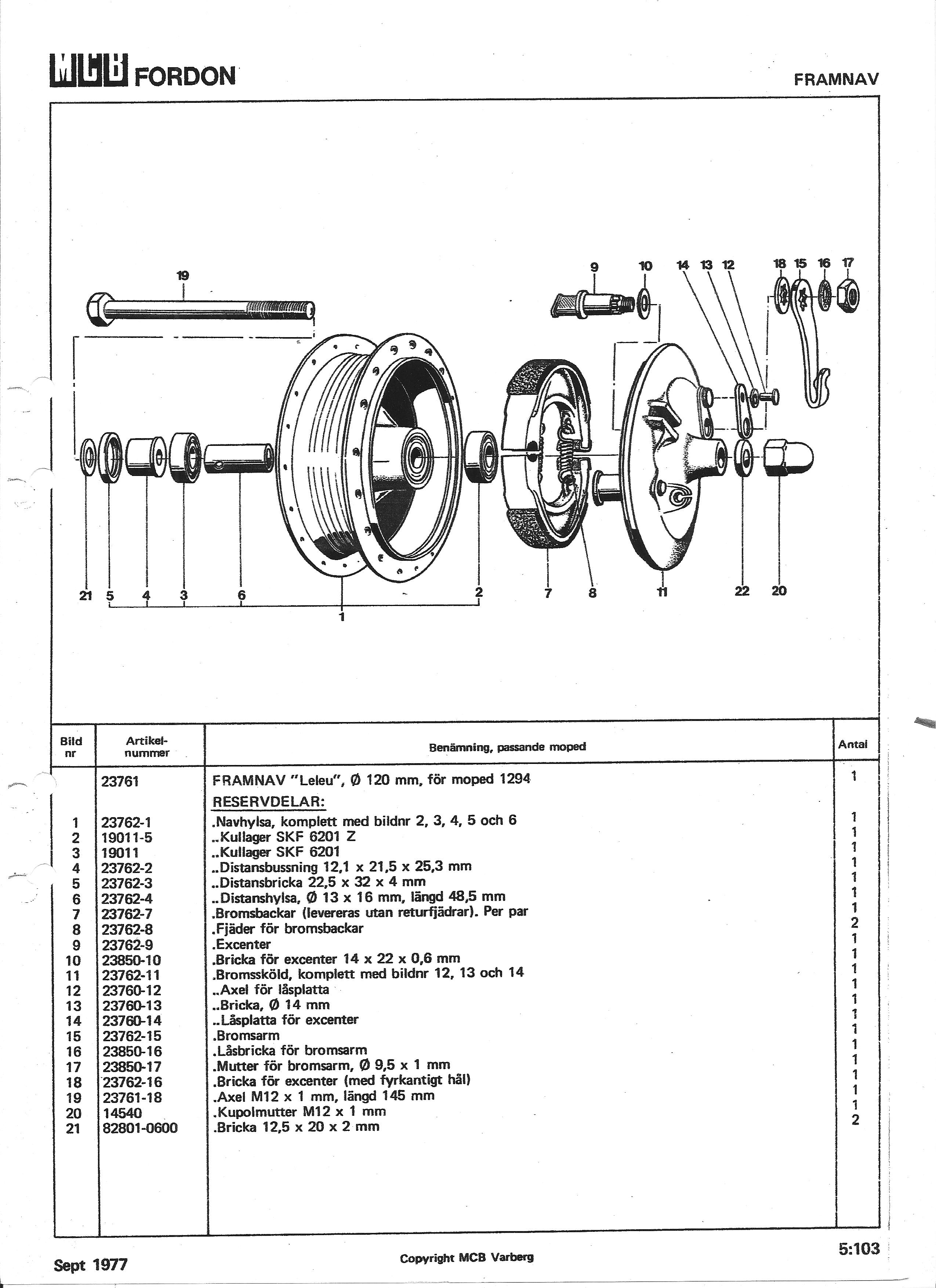 Egentligen finns det inga skisser som visar hur delarna sitter ihop förut nav och framgaffel. Resten av katalogbilderna visar bara hur varje del ser ut och vilket res.numer de har.