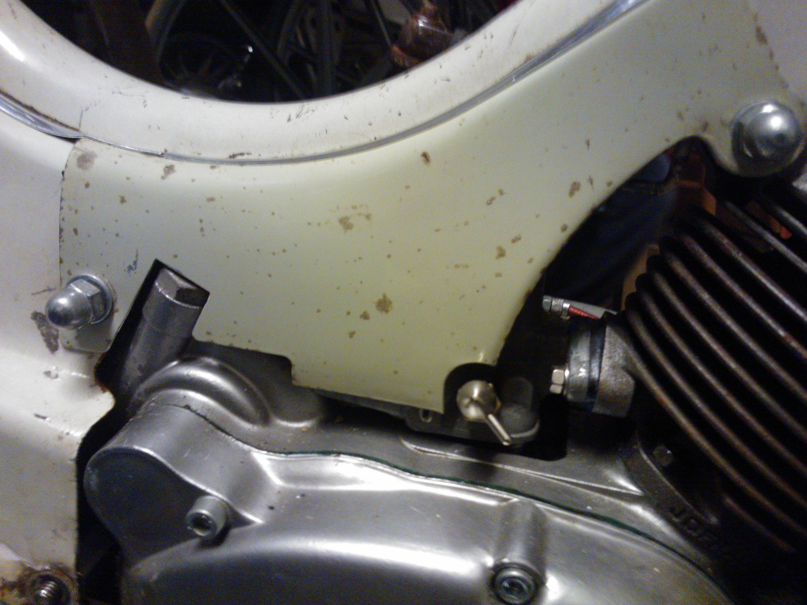 Jag gjorde en distans av ett det gamla drevet (se bild) så jag fick ut kjedjan några mm och sen har jag slipat av vårtorna/motorbussningarna på blocket, jäms med på höger sida och lagom på vänster för få motorn så långt till höger som möjligt.