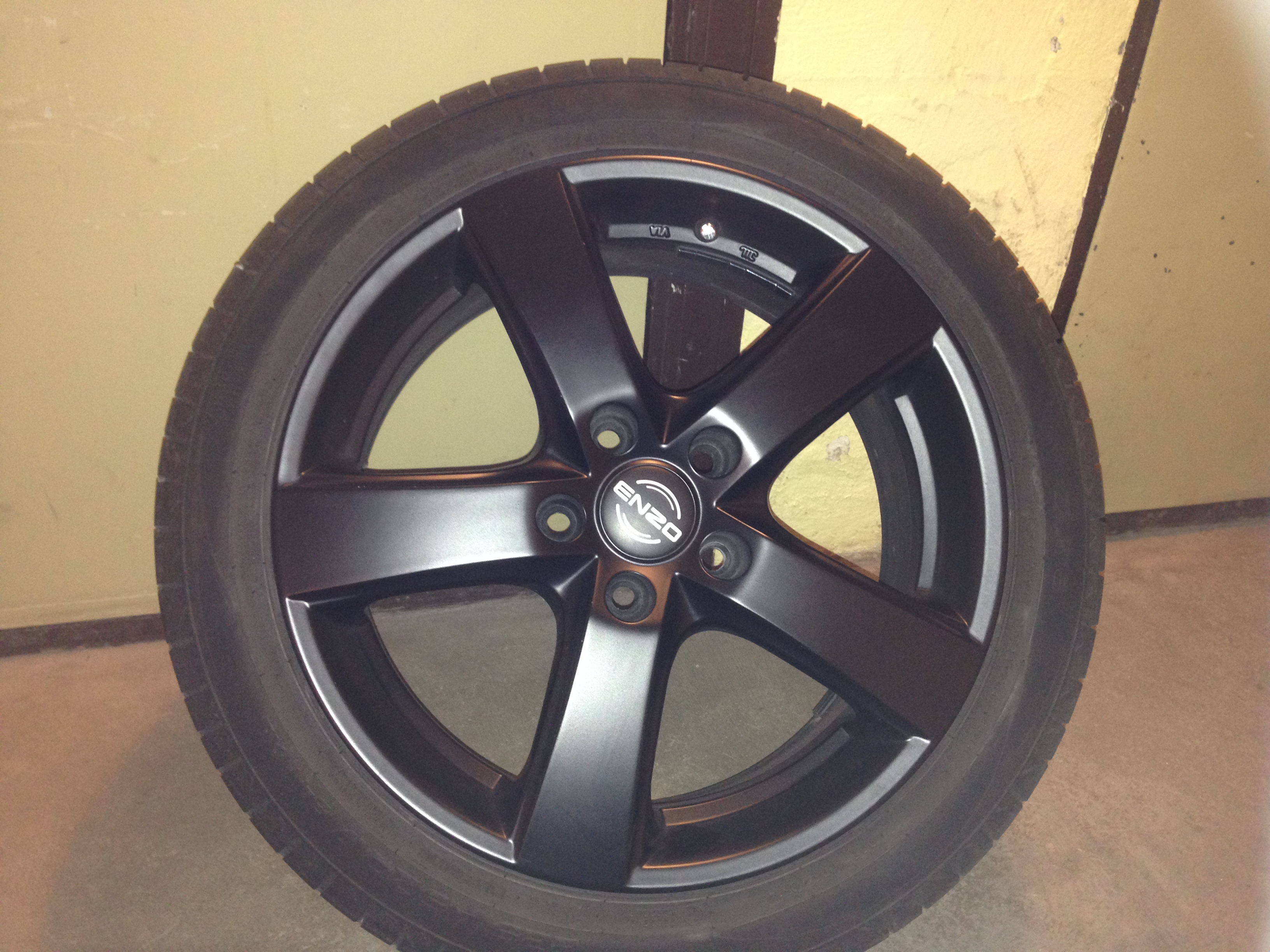 4 St Enzo Web Black fälgar 7,5-17 med bultmönster 5/114,3, det sitter lös navring nu för 67,1 och det är ET46 (Huyndai, Kia, Mitsubishi mfl), däcken är Nokian Z-Line som är A klassat i våtgrepp och B klassat i rullmotstånd.