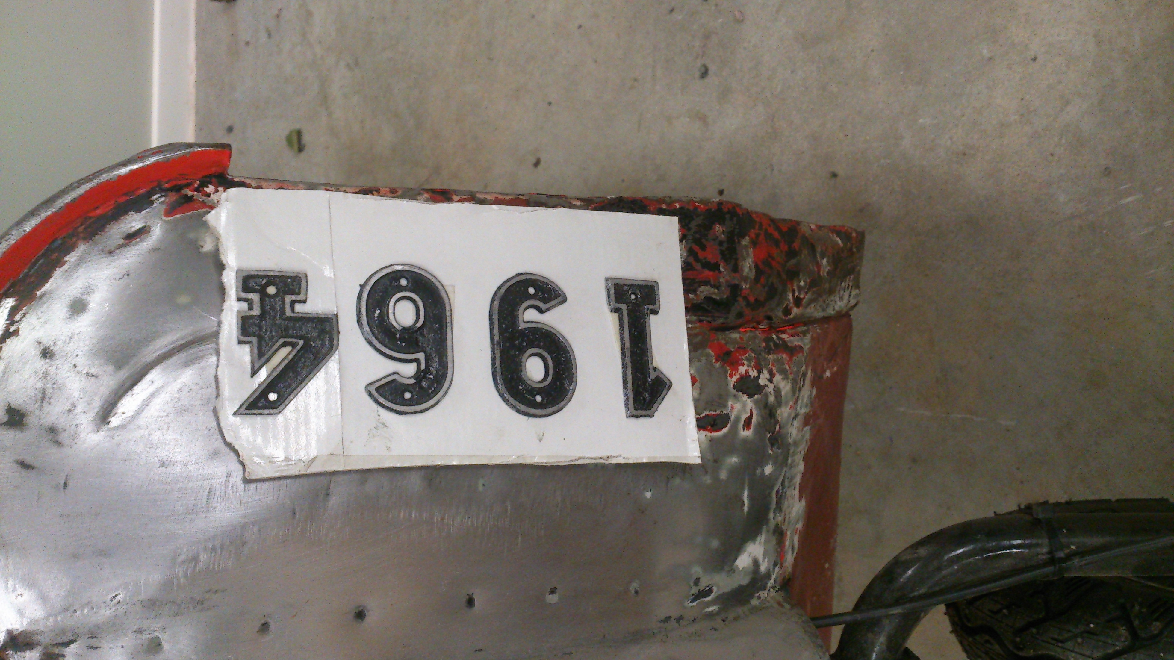 Göra en plåt och montera siffror med tillverkningsåret för mopeden, borde bli skapligt. För baksidan jag någon form av låda/burk för verktyg.
