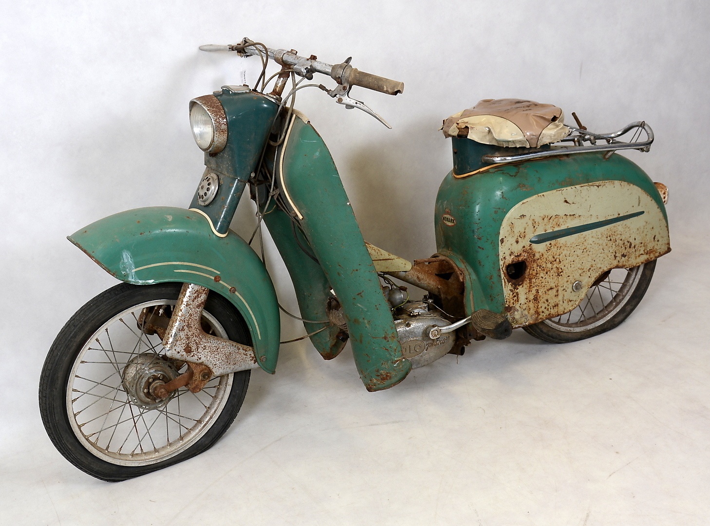 Monarscoot. Ilo Piano G50. 3 vxl. 54cc. 12V HPI. Rito-vev. 1957. Fläktkyld.