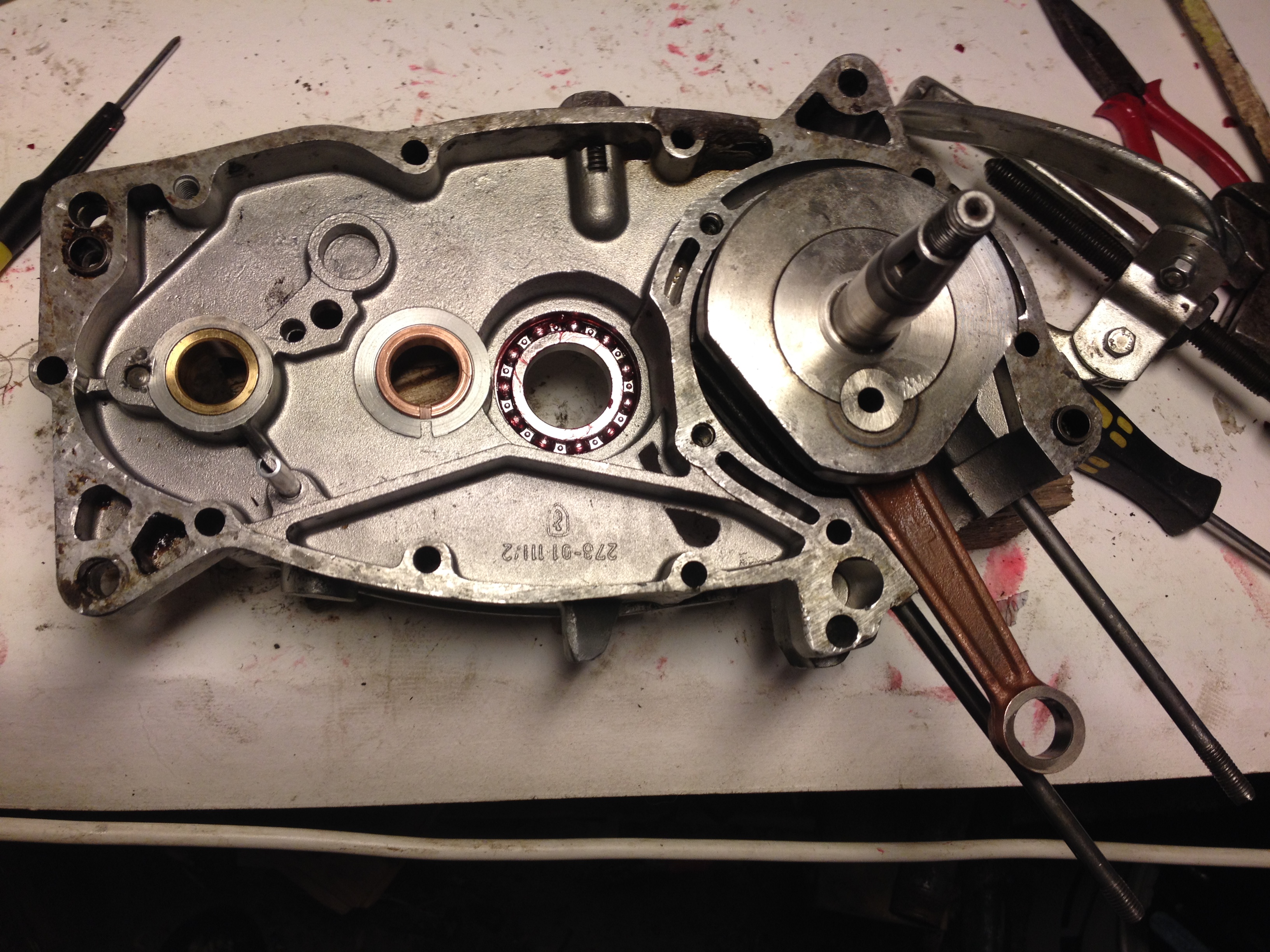 Sedan det så "bende" jag försiktigt isär motorsidorna Knackade ut alla lager och packboxar och klämde dit nya Då var det bara att sätta tillbaka allt, men så lätt var det inte...