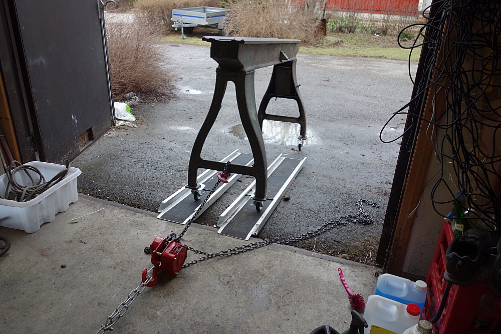 Ja det är bara att ta på sig sparkdressen så kan man vara ute och hålla på nu när det är så många plusgrader. Jag hade hoppats att få en bild när solen var framme men den gick i moln innan jag hann ta en bild :( Det är skönt att nu ha fått in svarven rengjord. Det blir förstås en del skrapande ändå där jag missade. Den fasttorkade oljan sitter mycket hårt. Jag körde flera omgångar med Biltemas kallavfettning och sedan högtryck med en vass roterande stråle som man använder för att tvätta trädgårdsplattor med. Den tar hårt sittande mossa och alger hur lätt som hels. Men oljan på Bachosvarven, som mer liknar hårt intorkad tjära, fick den jobba hårt med.