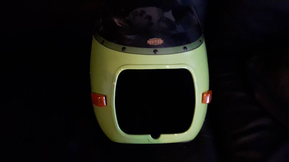 Mopeden var sedan tidigare ombyggd med motorfästen till någon Kina Zundapp kopia motor. Omlackerad i en tjusig orange kulör.