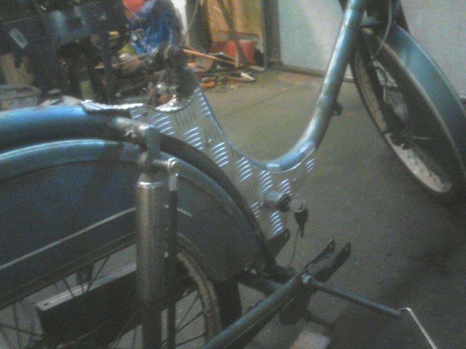 Även mopeden fick sig en uppiffning här påbörjas montering..