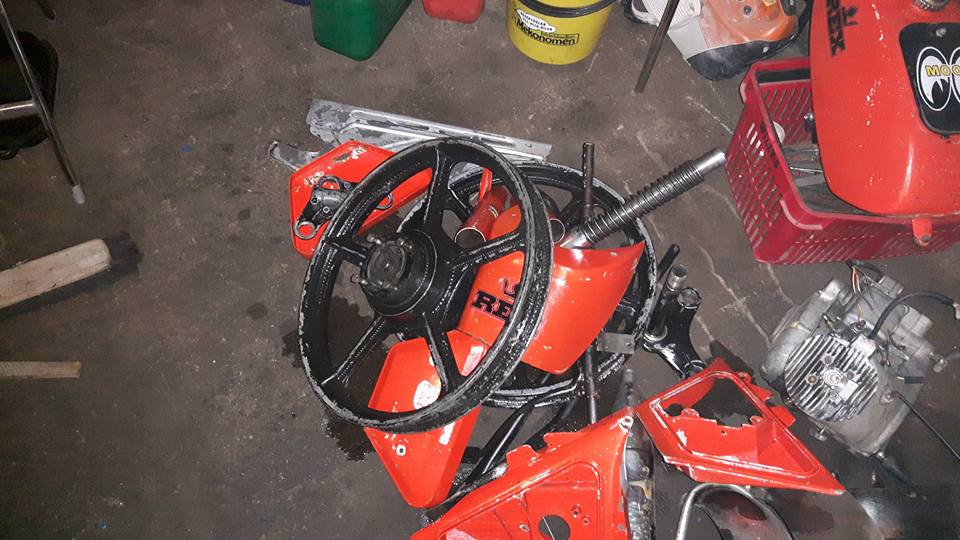 Mopeden var sedan tidigare ombyggd med motorfästen till någon Kina Zundapp kopia motor. Omlackerad i en tjusig orange kulör.