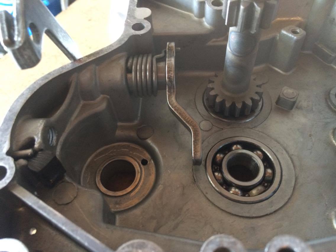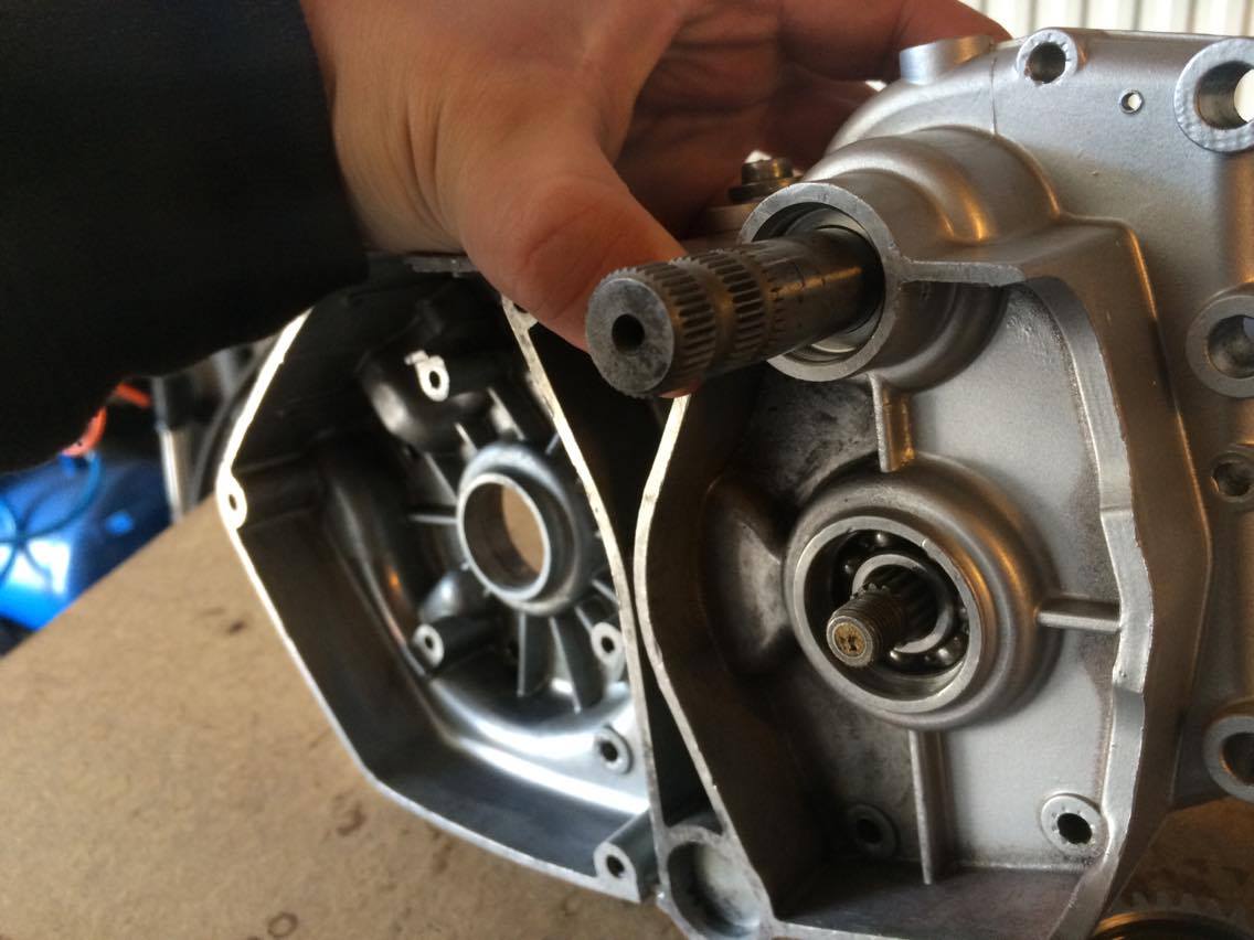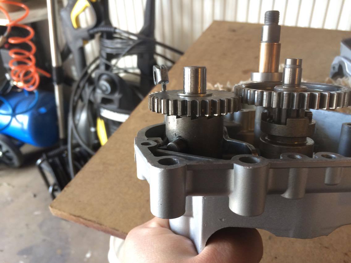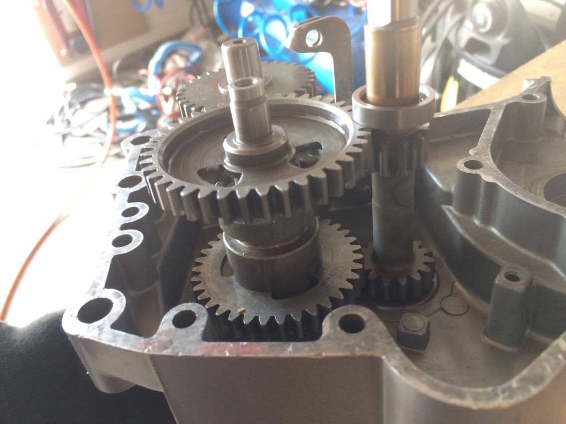 Såhär var det då jag skulle börja montera ihop motorn igen, växelhjulen ligger inte an mot dreven på kopplingsaxeln, dom nuddar bara i varandra.