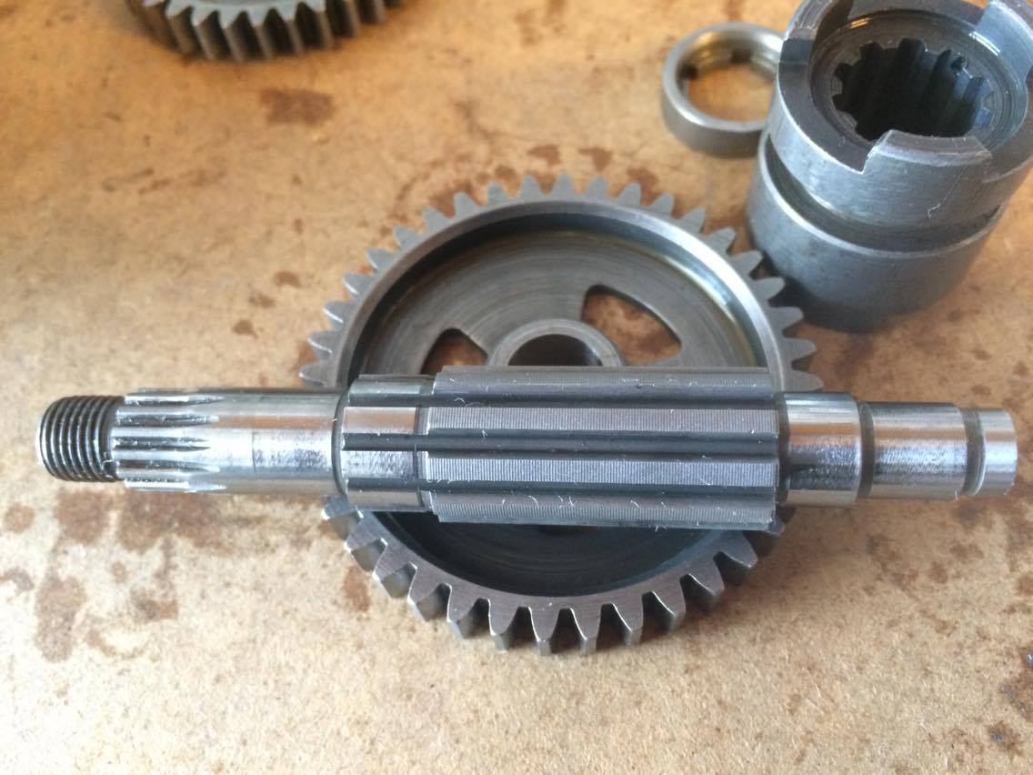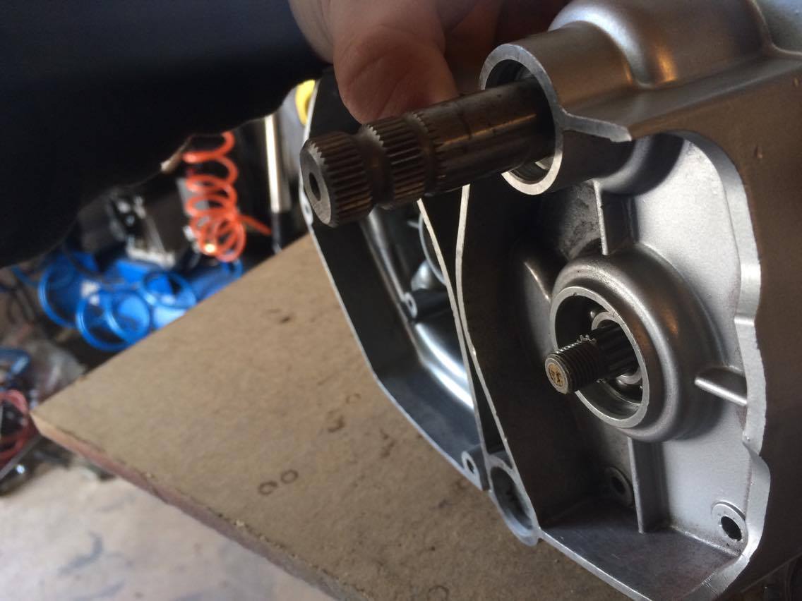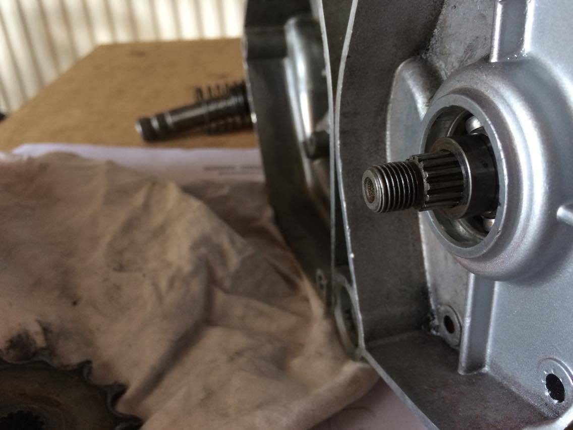 Utgående axel till drevet, axel knackad helt mot lagret och drevet helt på plats, ser ju ut att stämma