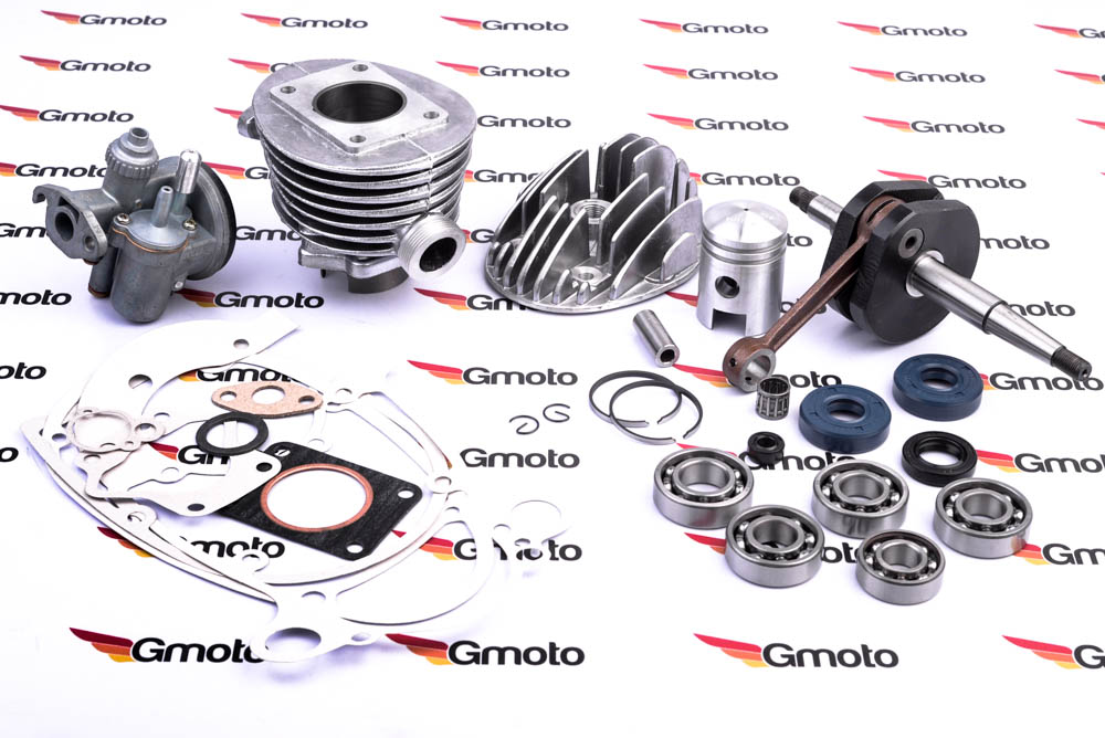 Efter att rotat runt lite mer visade sig dock delar finnas gott om och till fantastiskt låga priser!! Alltså ett motorreparations kit innehållande 60cc cylinder,kolv,topplock,förgasare,vev,lager och samtliga tätningar packningar!! Allt detta till de löjliga priset av 275 zloty alltså under 600kr!! Jojo nu snackar vi möjlighet till mycket mopedhobby till Polsk budget!!