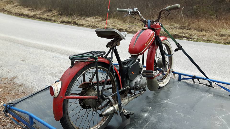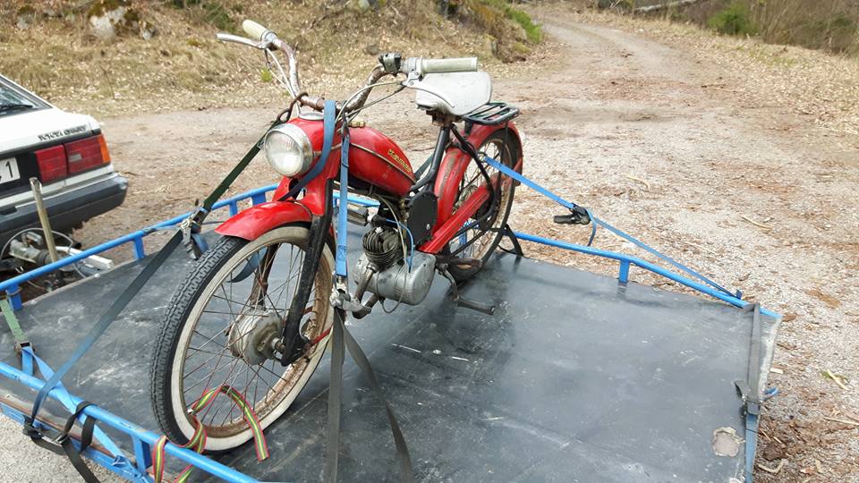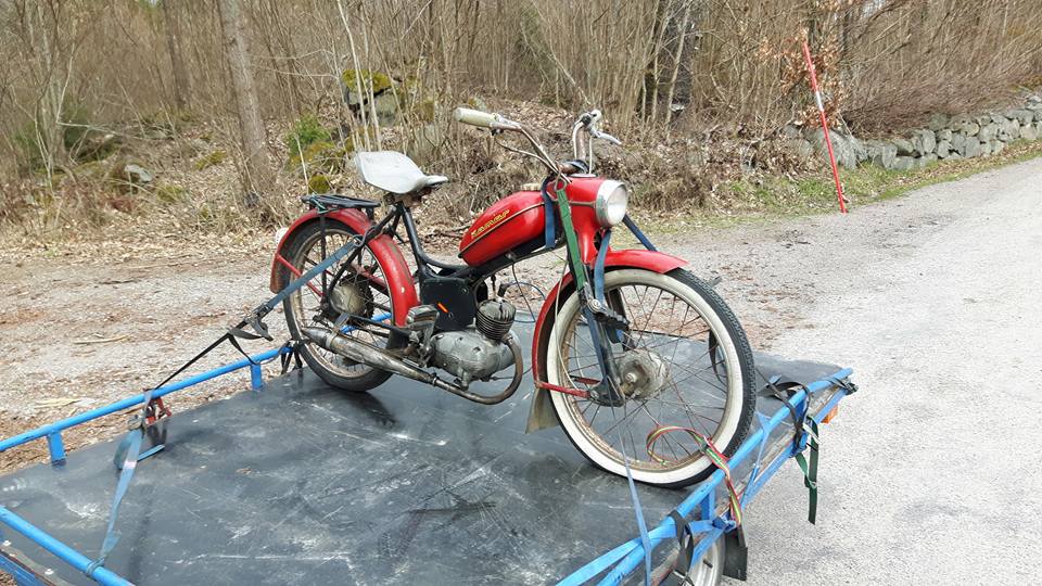 Sagt och gjort söndagen vigdes åt att hämta hem mitt fynd och en plan har redan utformats över fortsatt arbete!! Jag ska göra precis tvärt emot mina tidigare byggen!! Se projekttrådar om familjemoped och Comet på mitt vis!! Mina byggen brukar spåra ut rejält.. Något som inte ska få ske med denna budgetmoped ska jag bevisa för mig själv att jag även är kapabel bygga billigt och bra!! Krama ut det mesta av slantarna och få mycket hobby för liten peng låter enkelt men blir säkert svårare än jag tror!!