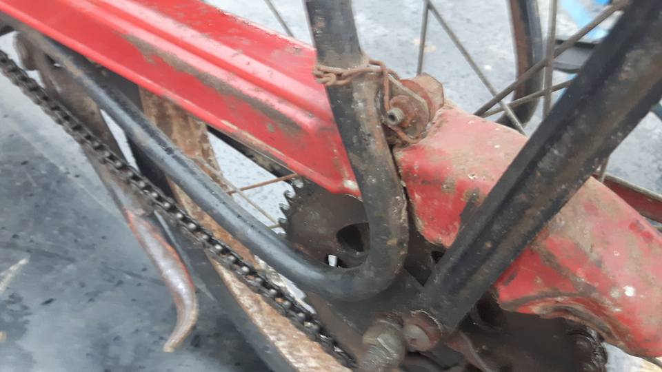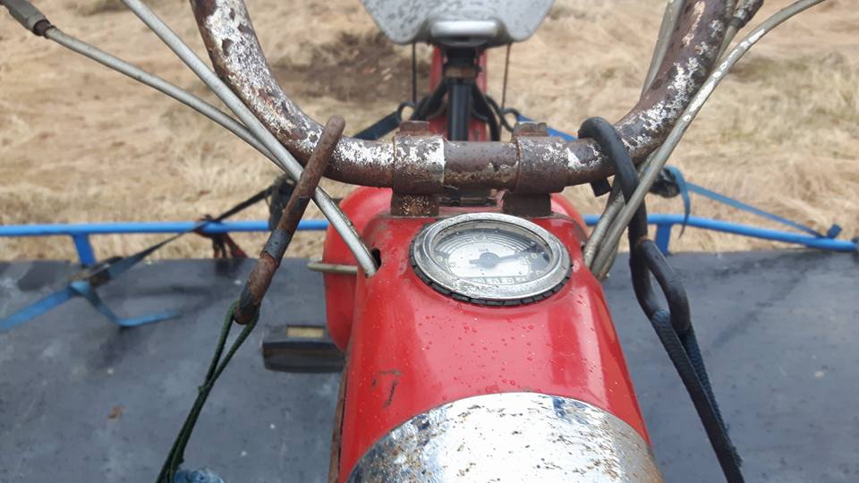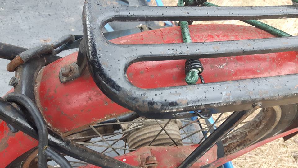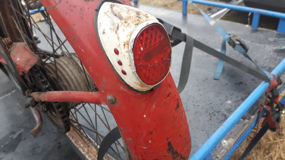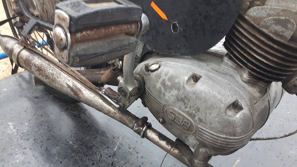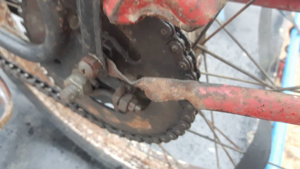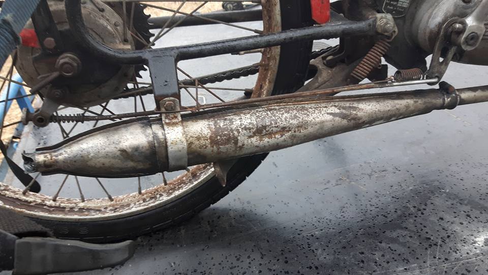 Utöver patinan finns det lite historia att ta hand om lite krökta stag buckligt/böjt kedjeskydd trasig baklampa och väl konstig fjädringsegenskap på främre stötdämpning!! Så en blandning av renovering nytt och begagnat kommer krävas!!