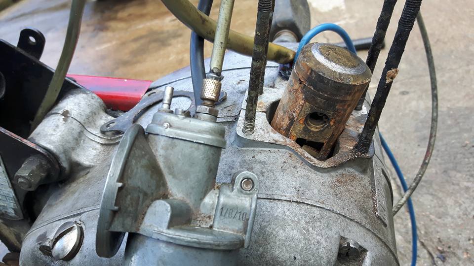 Motorn går inte runt vet inte hur var när varför men motorn vart tokstum!! Måste stått vatten både i motor som i cylindern. Vilken troligen kom dit under hemtransport i ösregn. Sannolikt genom obefintligt monterad förgasare!! Man kan inte tänka på allt ångrar nu att jag inte lade någon timme i våras. Nu var ju ändå motorn tänkt att renoveras. Men hade varit kul fått kört lite innan!! Samt än kuligare bara fått monterat cylindern och hunnit med något rally med den!! Tja vem vet om tummen sitter löst och lite tid finns över så möjligt det hinnes ändå!!
