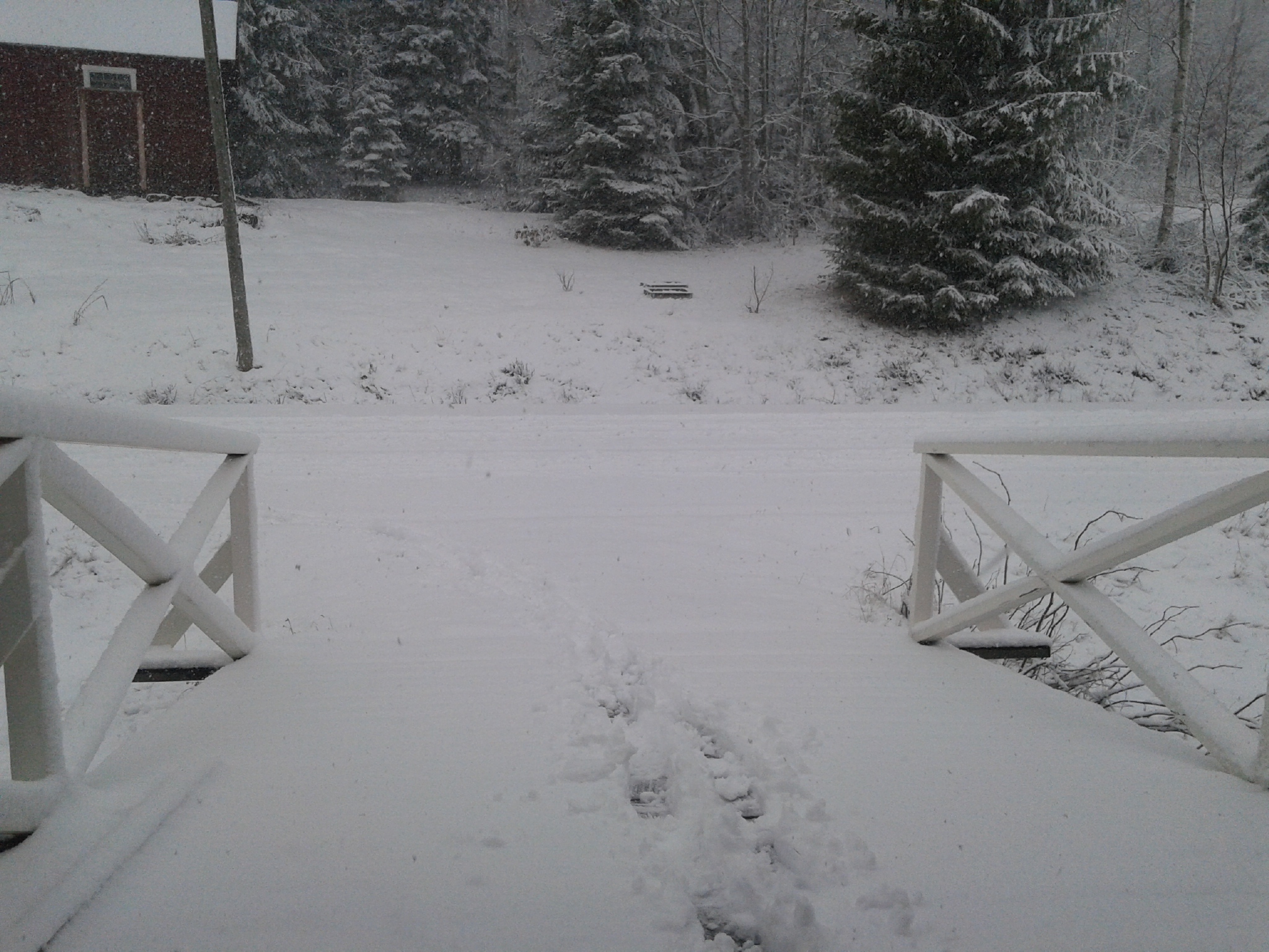 Nu skiner solen ordentligt men i morse kom det redigt med snö: