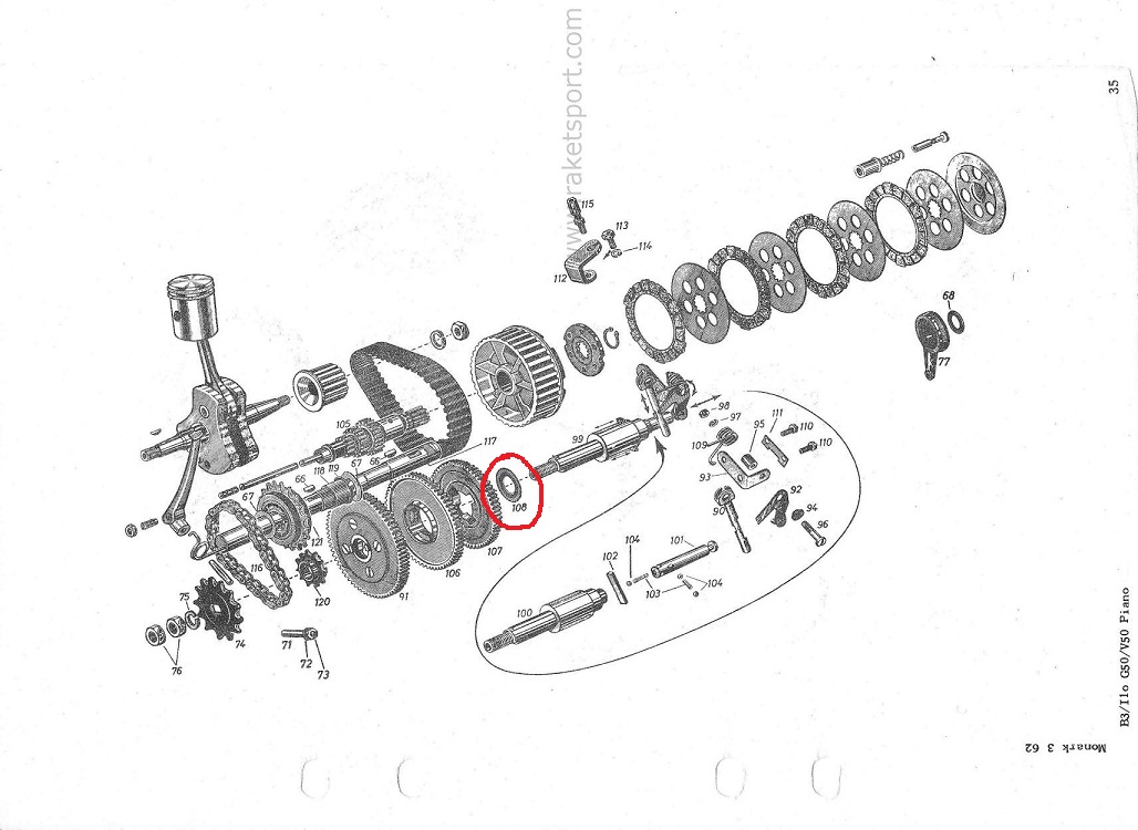 Och där såg jag nu att jag saknar en 104 kula i min renoverade motor
