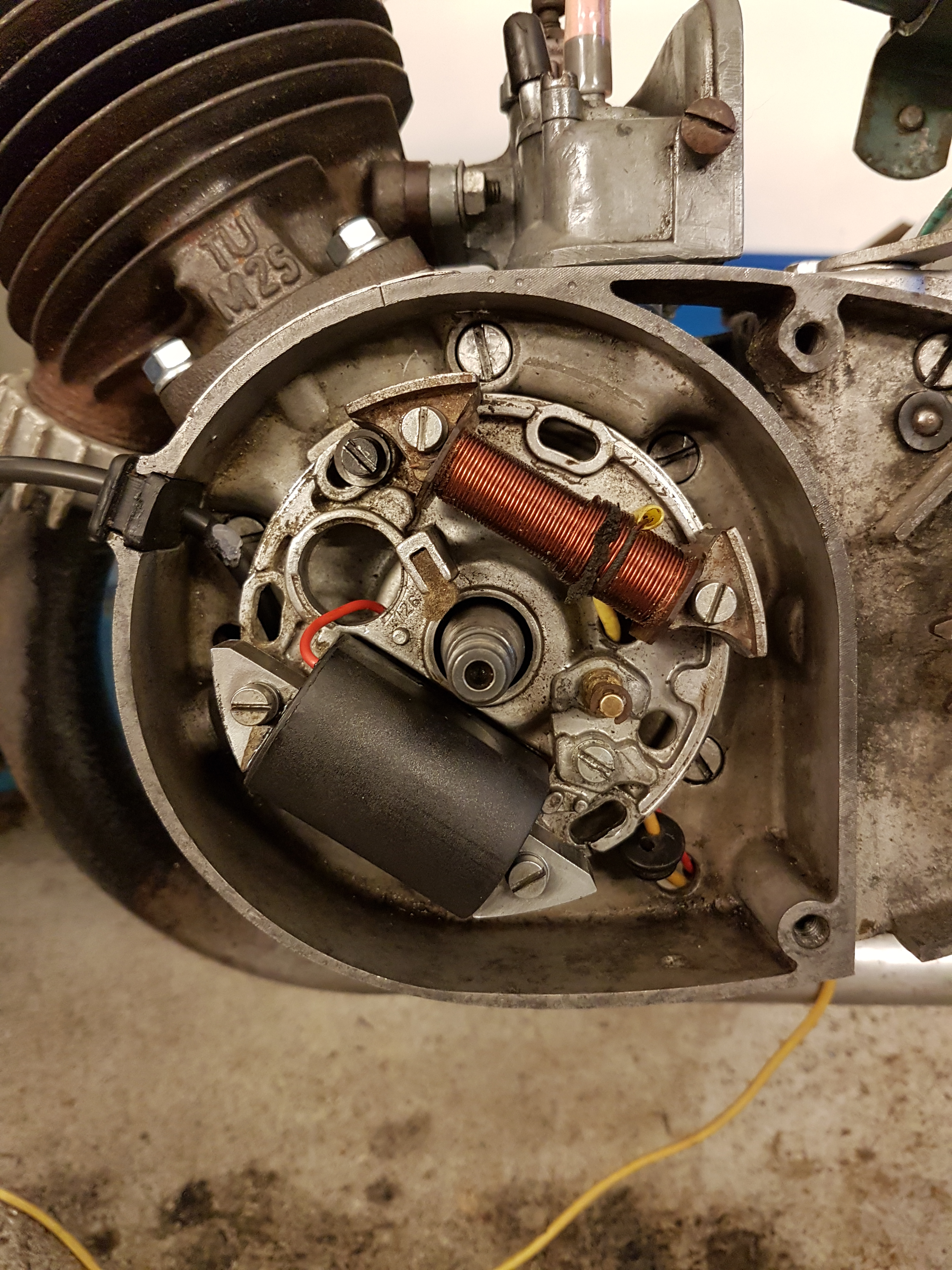 För att ställa tändningen rätt så har jag fått vrida plattan så att jag bara får i en fästskruv.
