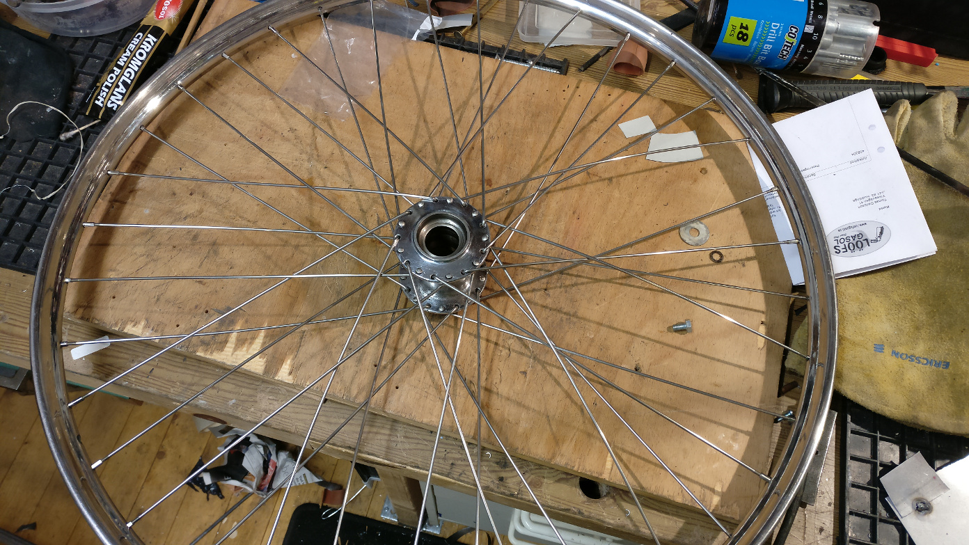 Det är där jag köpt framhjulet! Jag tar gärna ditt framhjul! Då får jag ju två likadana hjul även om det blir lite jobb med att ekra i det baknav jag har.