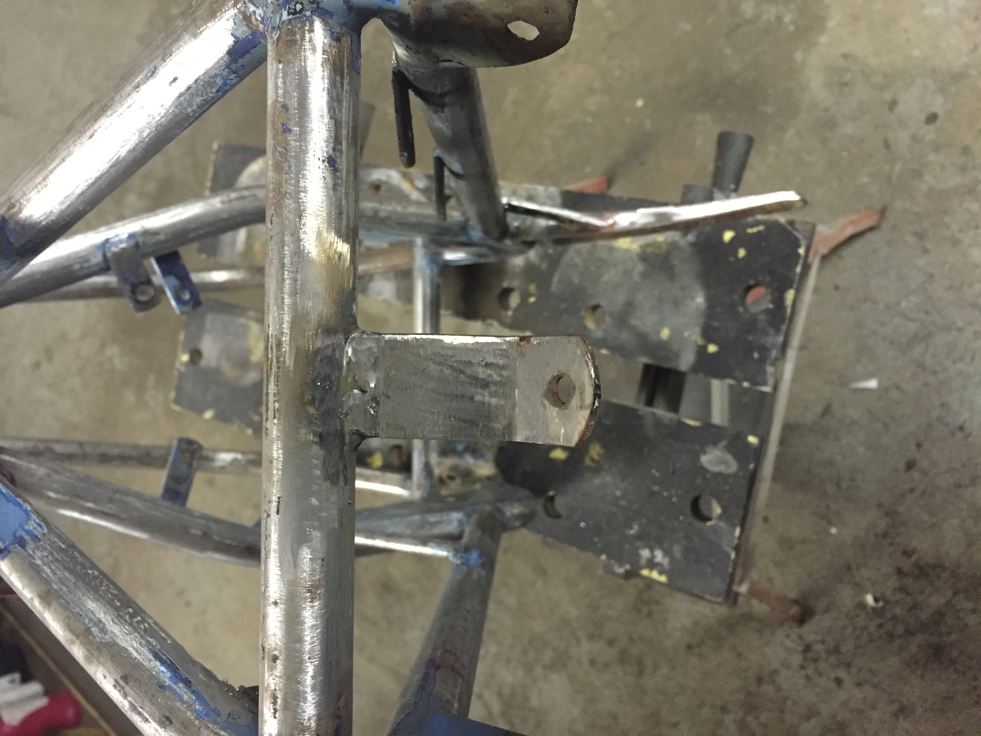 Börjar lite smått med att få bort en icke önskvärd kurva på ett av rambenen. Riktning var inte att tänka på pga de tunna rören och skadans placering. Har slaktramar som får bistå med rör och bortskurna fästen. Styrlåset försvann i farten.