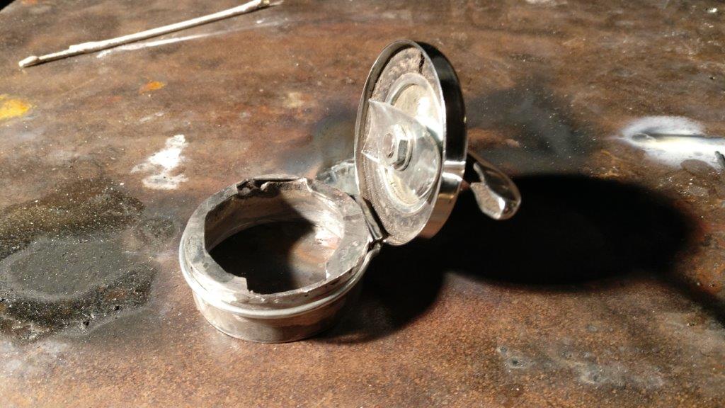 Den var förnicklad från början men efter lite slipande samt ättika och värmning blev den rätt bra. Det ursprungliga förslaget (kikkran) var för stor, tyvärr. Den är riktigt snygg annars!