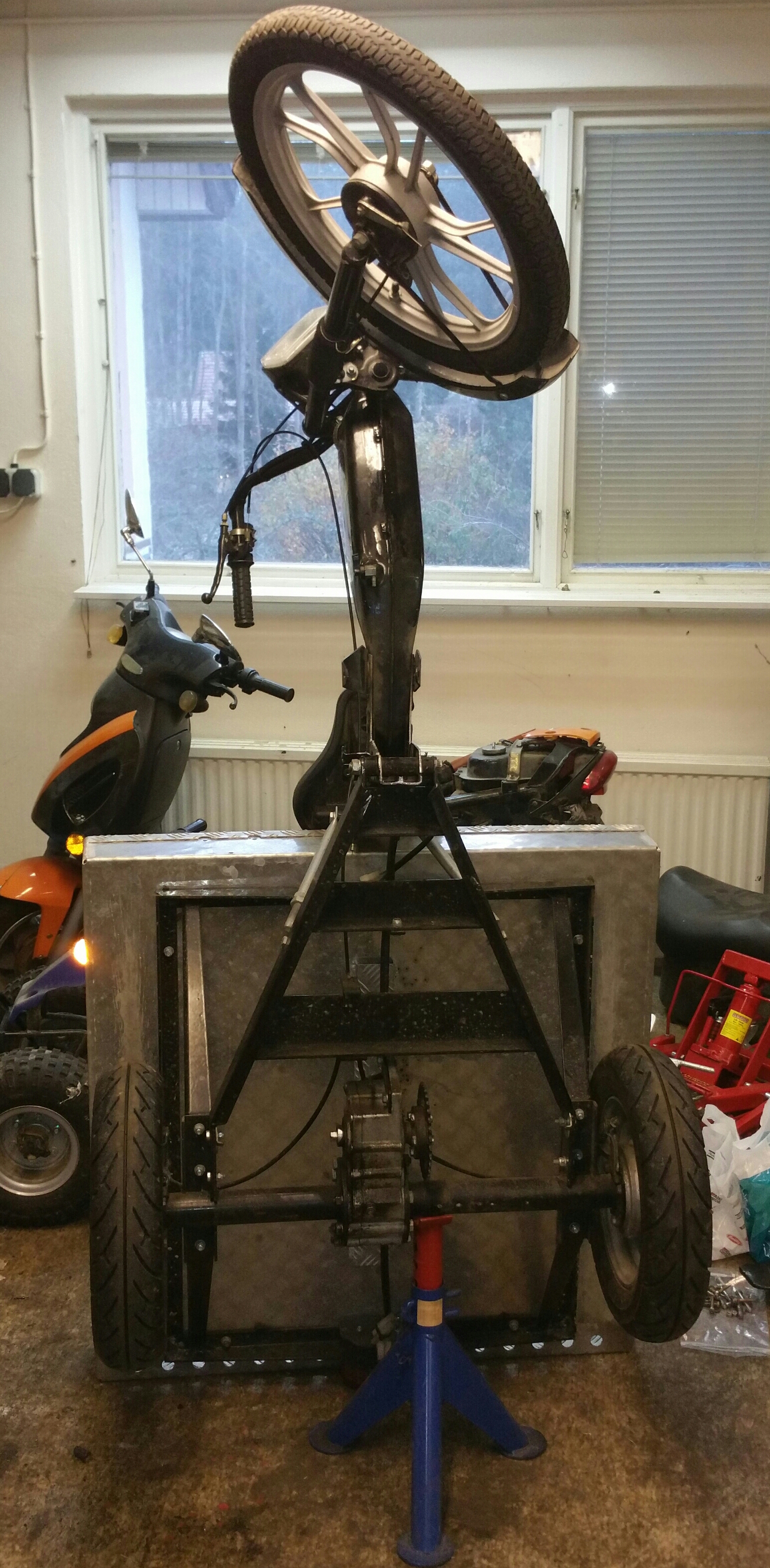 Första testrundan! 16 drev var lite stort. 1an o 2an gick grymt bra. 3an sådär och 4an katastrof. Ner till 14T får det bli! Spänna kopplingen lite, flytta gaswiren och fixa glapp i framlyset.