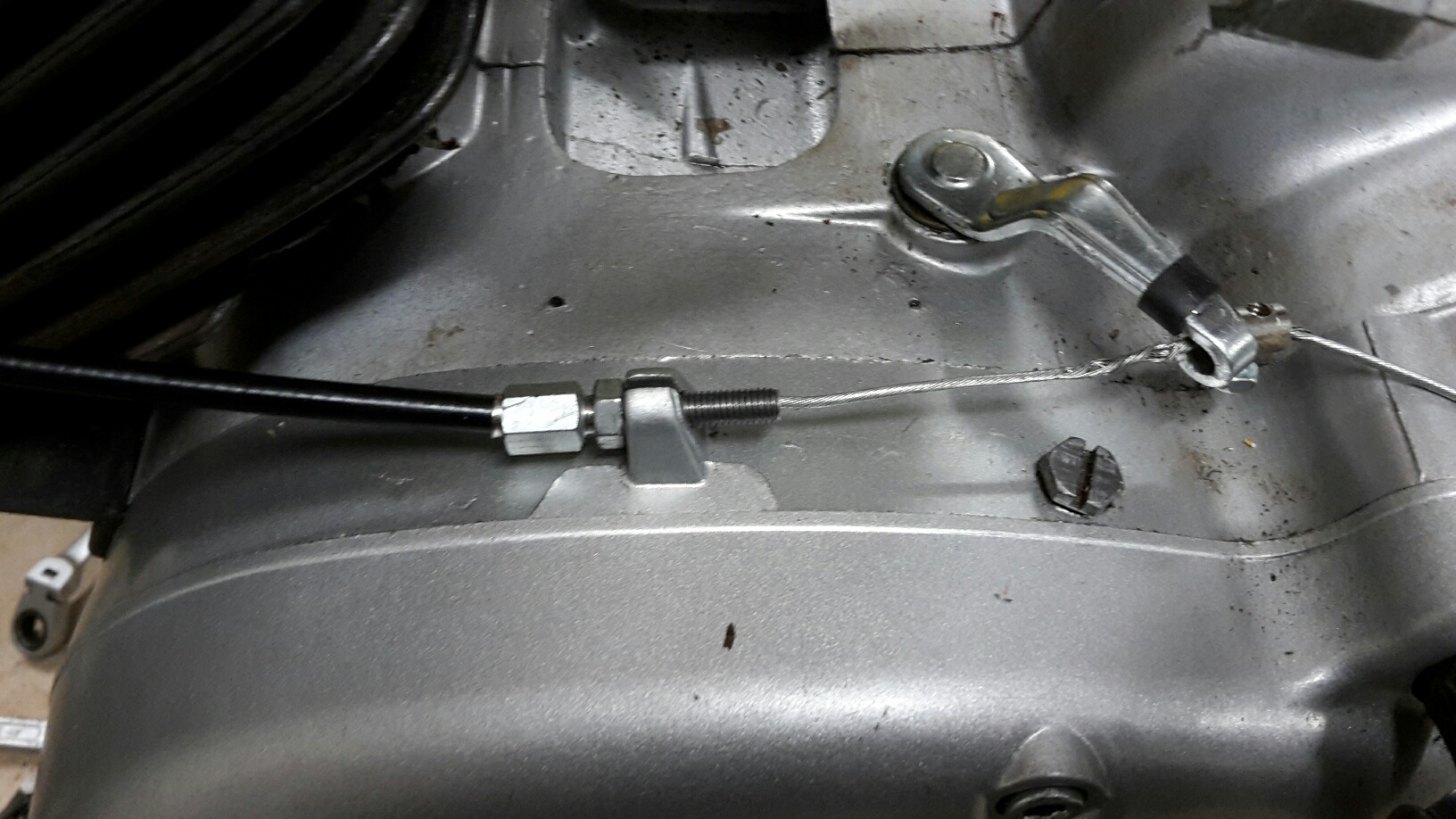 Gjorde så att jag först ställde in ett glapp på ca 10 mm i kopplingsarmen. Sedan hängdes vajern dit och justering i handtaget.