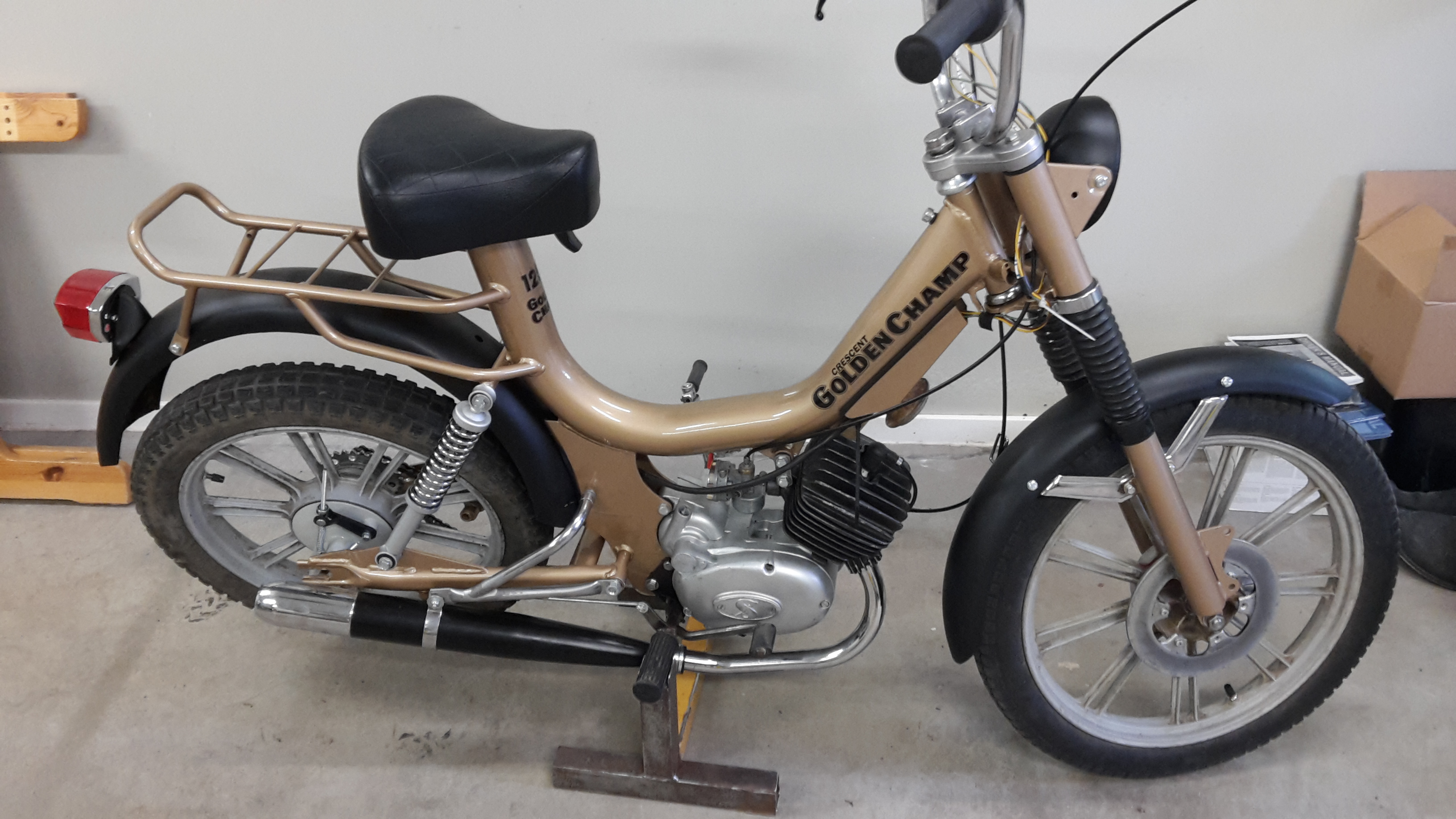 Får väl säga att det är väldigt kul att jaga delar, köpa och montera dem - Lilla julafton varje gång man får hämta ett paket och hem och montera nya grejer. Motorn är renoverad med hela lager och ett flertal andra nya delar, startar bra men rasslar en del (vet att det är en Sachs...).