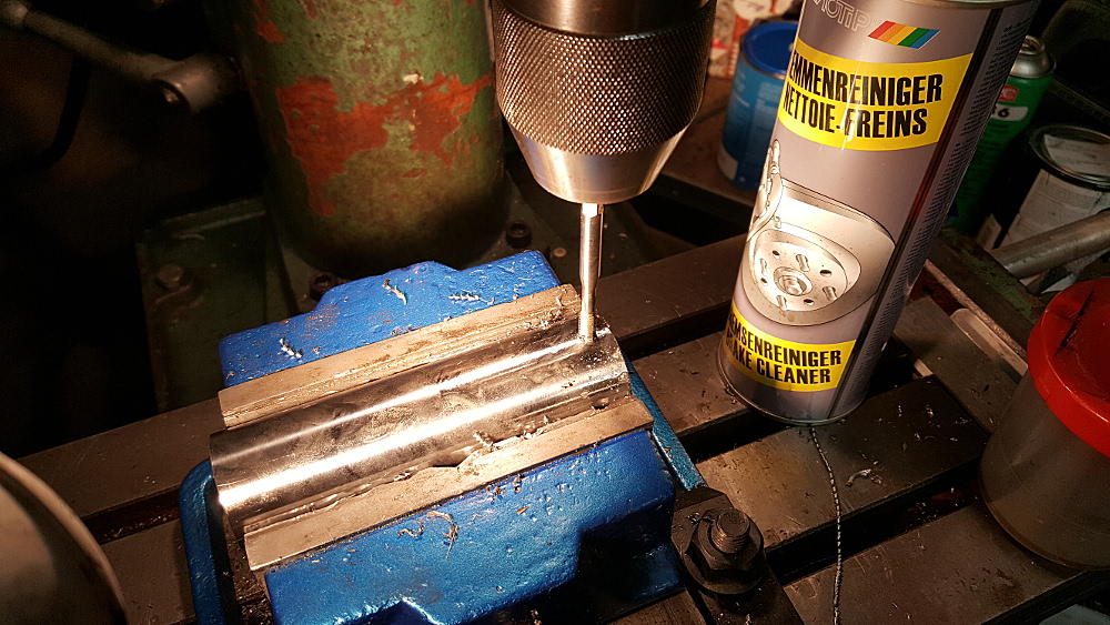 Det blev en julmiddag till men jag gjorde klart avdragaren när jag kom hem. Jag har en laddning nya och kromade hydrualkolvämnen som jag har fått och använder för att göra specialverktyg m.m. Så det gick åt ett par sådana bitar som svarvades och frästes som jag ville ha dem. "Hatten" är gängad M10 och gjord med 4 hundradelars presspasssning i den 100 år gamla Munktellsvarven. Som fräs använder jag en gammal ( tillverkad 1989) begagnad Taiwanesisk drill-press maskin med dragbult så att man kan sätta i fräskronor utan att riskera att de kommer farande och orsakar skador. Fräsverktyget är en av flera SECO Tools 40 mm hörnfräsar som jag har köpte för en hundring styck på maskinauktion