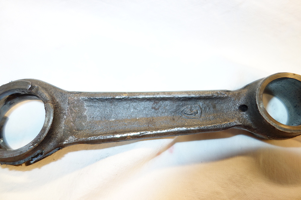 Så där fin ser inte mitt yxbygge till vevstake ut med den har kämpat tappert i halv mansålder. Nere mot storänden syns svarta fläckar som ser ut som koksbeläggning. Men när man petar rent lyser det ren koppar där och det är lika på båda sidorna. Bara på en yta av ca 1 kvadratcentimeter. Det har jag svårt att se förklaringen till om det inte är så att hela vevstaken har varit förkopprad från början men det tror jag inte. Här finns en del teorier i alla fall http://www.jalopyjournal.com/forum/thre ... ds.379343/" onclick="window.open(this.href);return false;