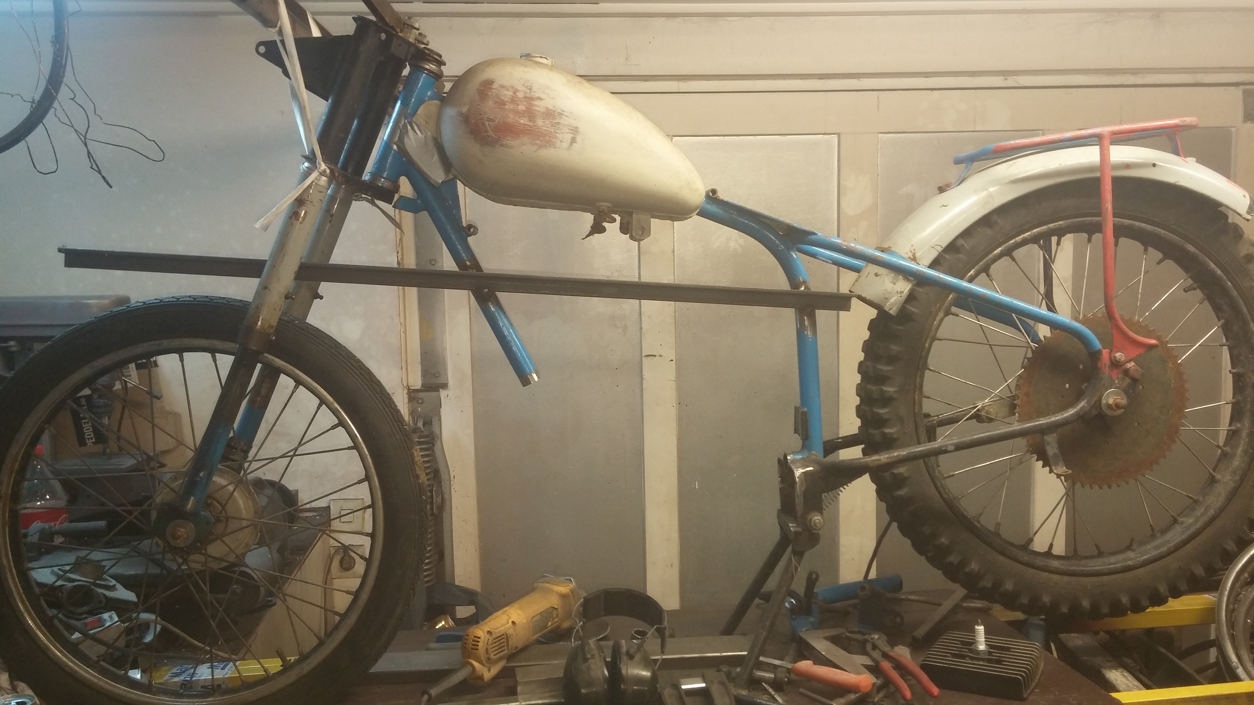 I brist på svets vart det att plocka ihop en moped till av överblivna delar.