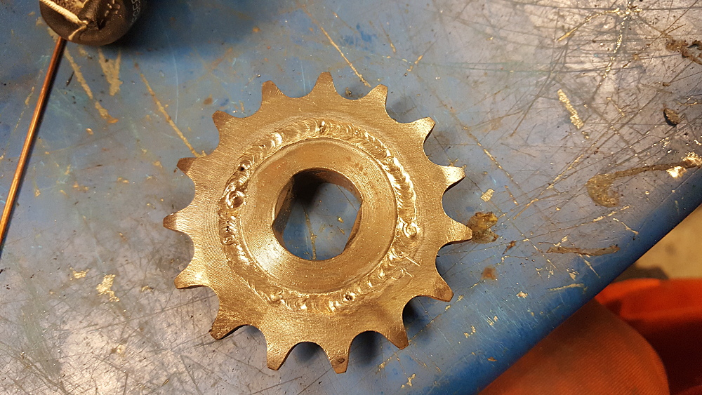 Aluminium är mycket svårare genom att det inte ger någon synlig glöd-puddle och rämnar snabbt när det väl gör det. Den här gången använde jag glasögon i hjälmen och för första gången kunde jag se ordentligt hur det fortlöpte. Att se bra och rigga upp så att man är stadig på handen är kanske det som betyder mest. Sedan är det förstås mycket enklare att svetsa ihop två drevdelar med bra passning som de här än tunnplåt som kanske inte ens passar ihop bra. Det är därför jag inte bygger avgasystem från scratch. Jag vet hur mycket förarbete det krävs med passningar för att det ska bli snyggt och bra. Vill man bli duktig på att TIGa tunnplåt kanske man ska börja med grövre material för att se och förstå vilka fallgropar som finns och sedan gå vidare med svårare svetsningar i tunnplåt.
