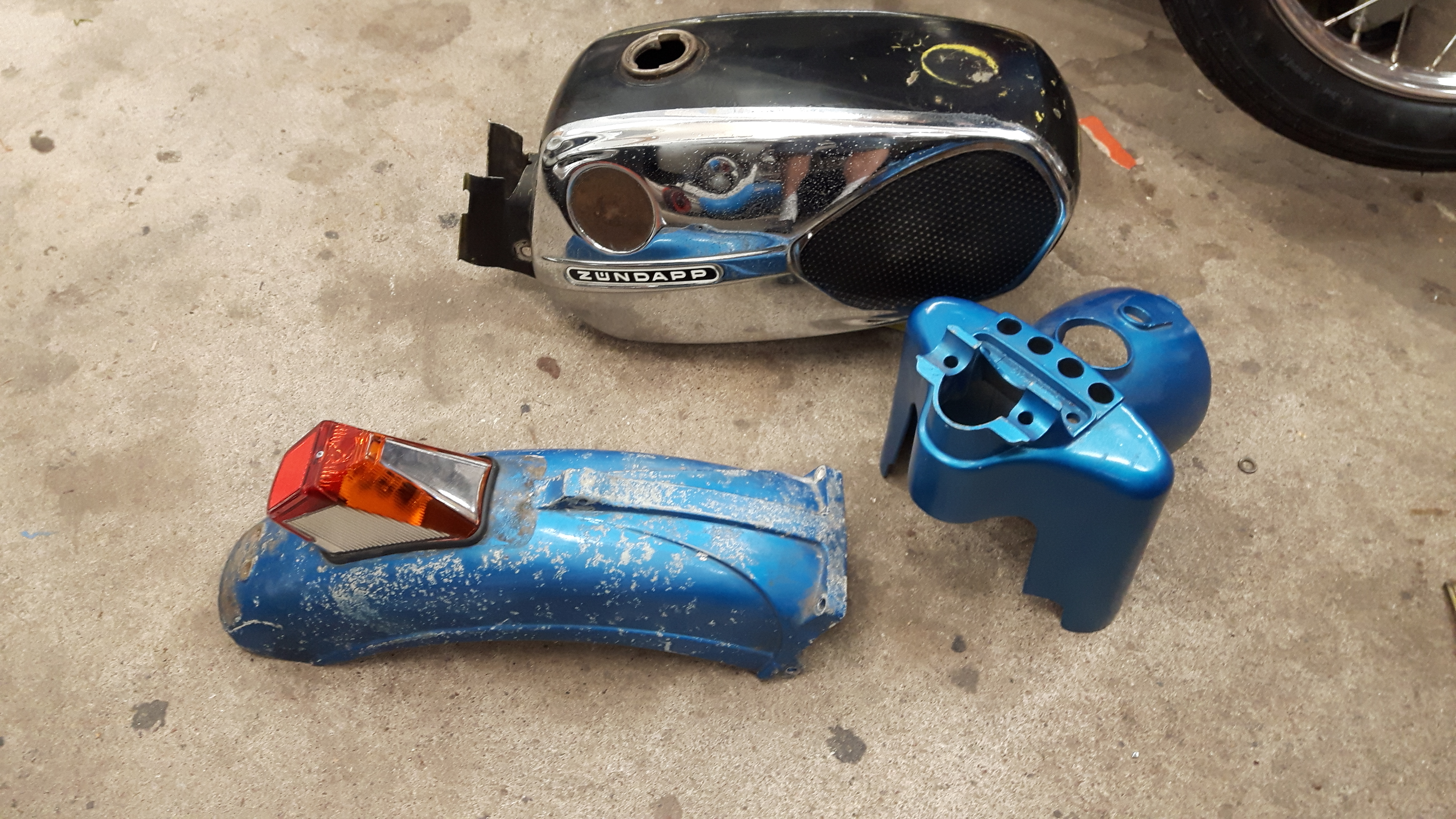 Tank med bulor,tror det är 4 bulor samt lite noppror i krom samt bakskärm med nytt lyse 1300 kr