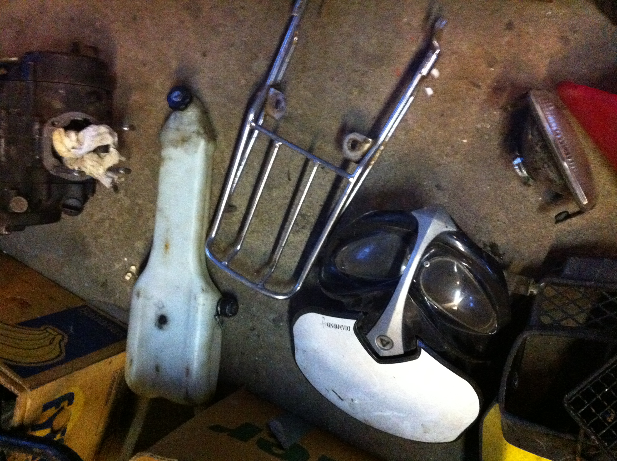 Flera extra original förgasare i delar, 28mm dellorto komplett med extra jet munstycke, avgassystem, kåpor, backspeglar, lysen, div mm.