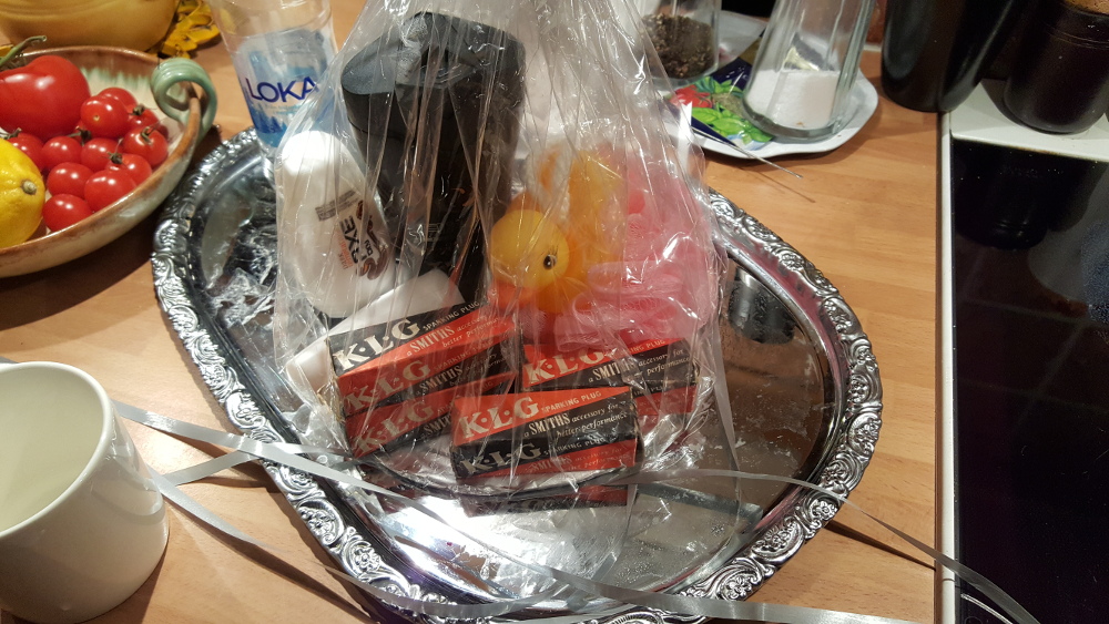 Jag fyllde år i dag och fick det här av en kompis. Nya originalstift till Zundapp från 70-talet och badanka m.m.