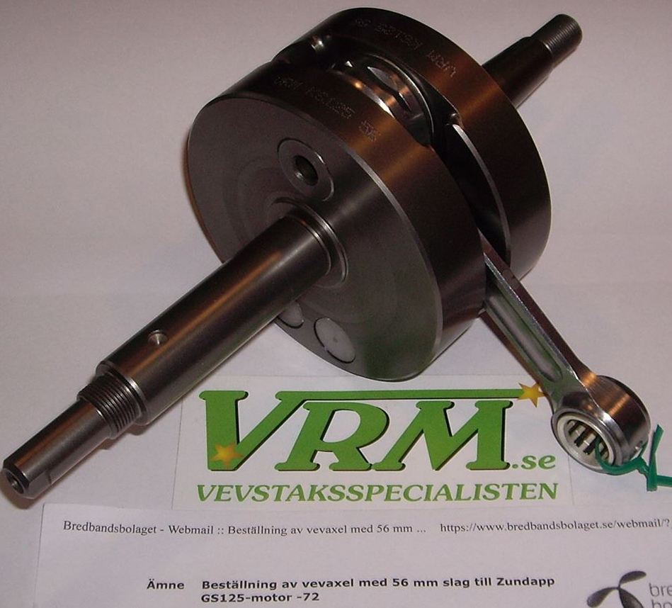 Den här motorn blir lite mer påkostad utan att för den skull bli dyrare än den första 125an genom att #2 är i bättre skick. Nytt cylinderkit är beställd från http://www.mopedrenovering.se" onclick="window.open(this.href);return false; och en vev med 56 mm slag i.s.f. original 54 är tillverkad och kommer inom kort. Med den här fina VRM-veven räknar jag med att det blir en mycket hållbar motor för trim och med god balans.