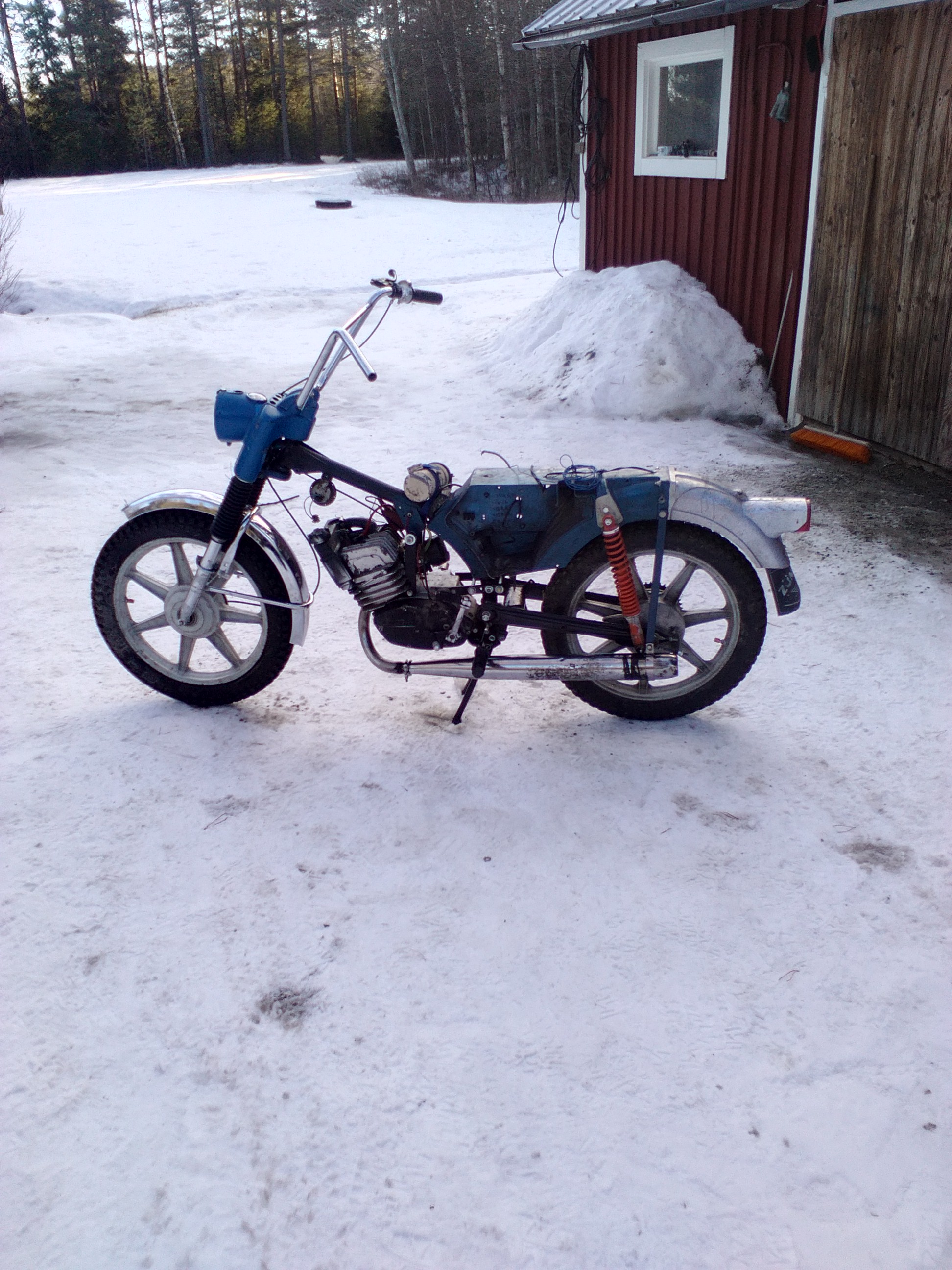 Så nu är monstret i gång har kört ca 1,5 mil och den går riktigt bra lyfter framhjulet på första växlarna,går tyst och mjukt ska bara hitta ett skumgummi som går över luft burken och sätta dit ett bollhorn som låter lite mer .