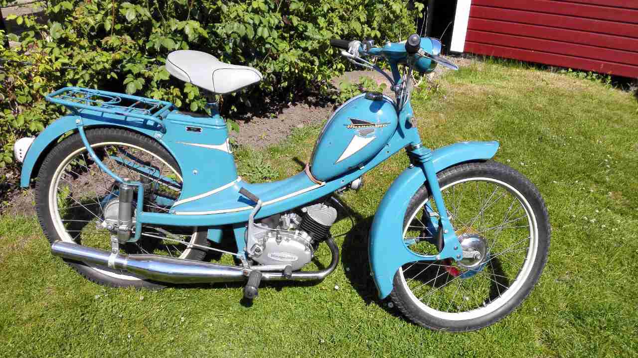 Nära i originalutförande, originallack förutom kåpan mellan tank och ram som saknades från början , motorn är lite busig, Ritovev, Flinta exportcylle ,15 mm förgasare,SKF C3 lager NOS 4 skivig koppling ny rem mm.