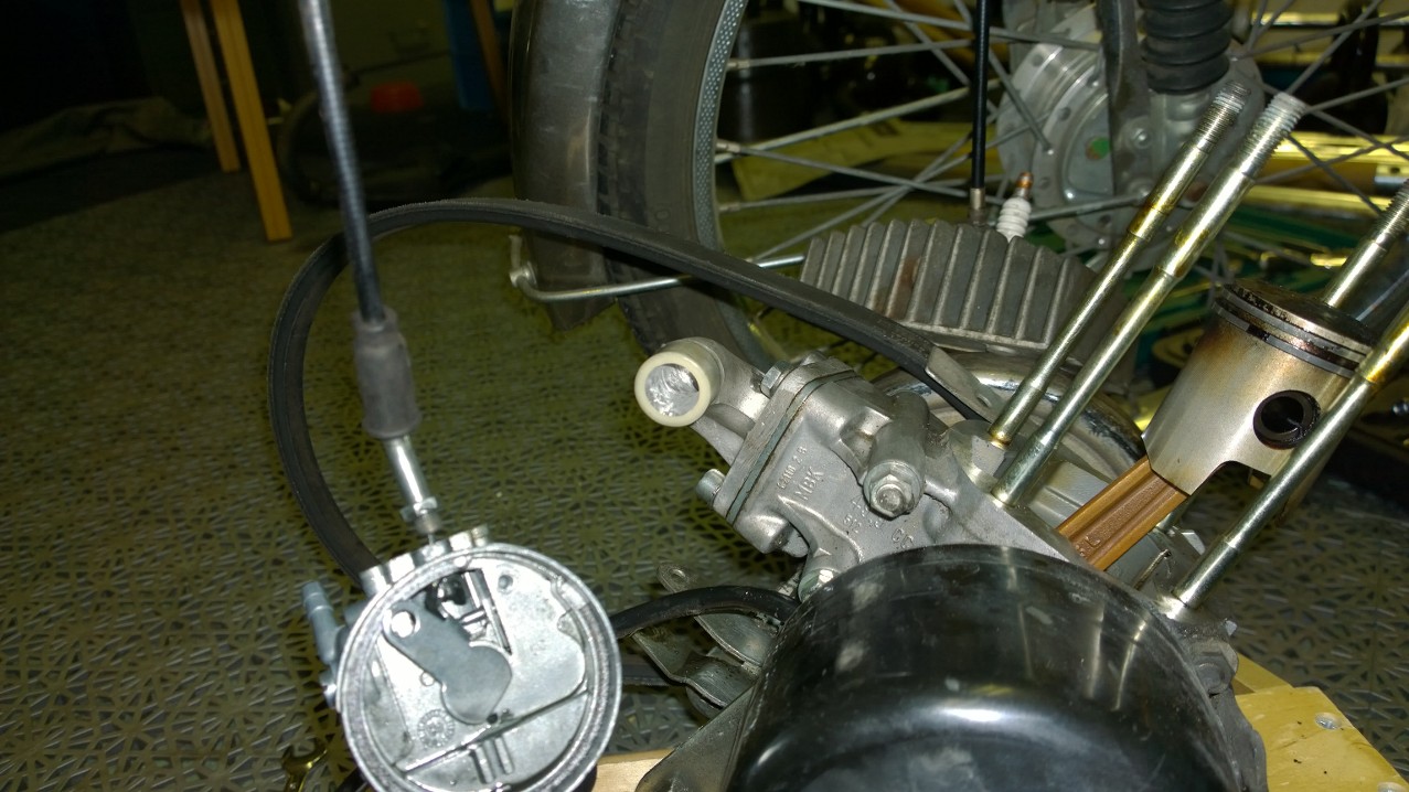 Problemet är att den taktar när man kommer upp i hastighet, typ direkt. Finns en Delorto flatside förgasare på den 14/10 (14mm till insuget och 10mm till luften). Finns ingen nål att justera utan bara huvudmunstycket.