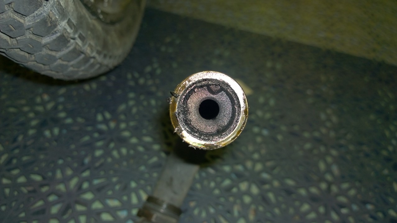Borrade upp munstycket (har 2st) till 0.9mm. Det var för fett så fick fick byta till 0.85mm, för fett fortfarande. Märkligt nog var det 0.8mm (fick löda munstycket och borra 0.8mm) som gick bra på den gamla cylindern också som var bäst. Original var 47...