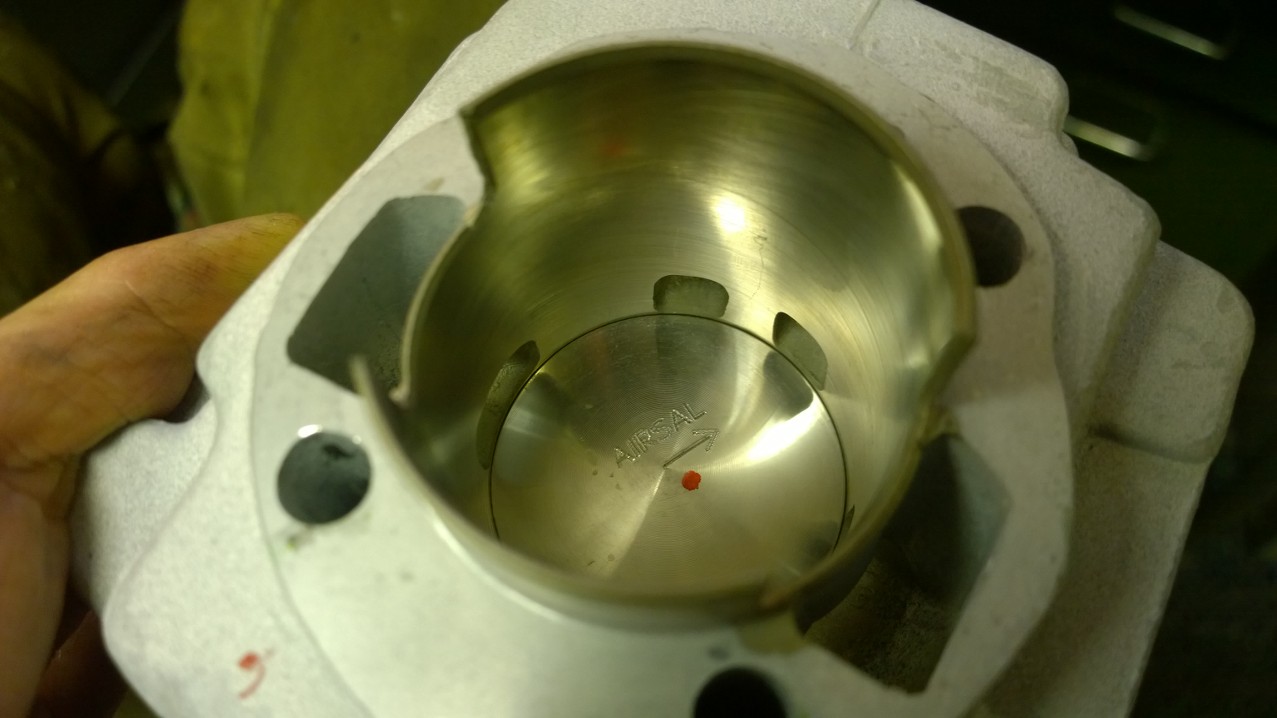På original kolv ser man att kolven på insugssidan är månformad precis som när man "jackar kolven" vilket inte denna kolv är (den är "rak" längst ner). Denna motor har reedventil ner i vevhuset. Möjligt att det ger något om man gör detta? Vet ej.