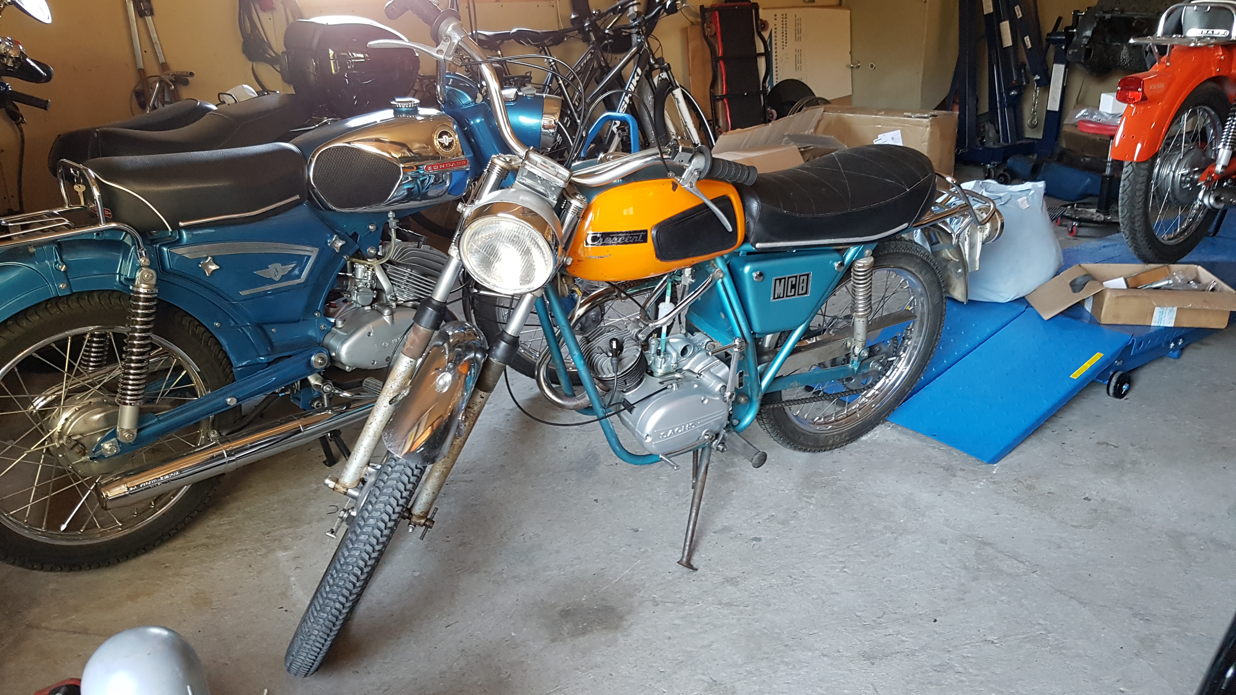 Nu har man kommit hem igen och börjat pula med mopparna. SM50n har begåvats med den renoverade LKFen. 60cc med Agge topp och 17 Bing. 40 år gammal skit fick säga farväl av moppen också. Behåller som sagt patinan/orginal färgen. Ska bara lacka sidokåporna som fattades och putsa upp lite.