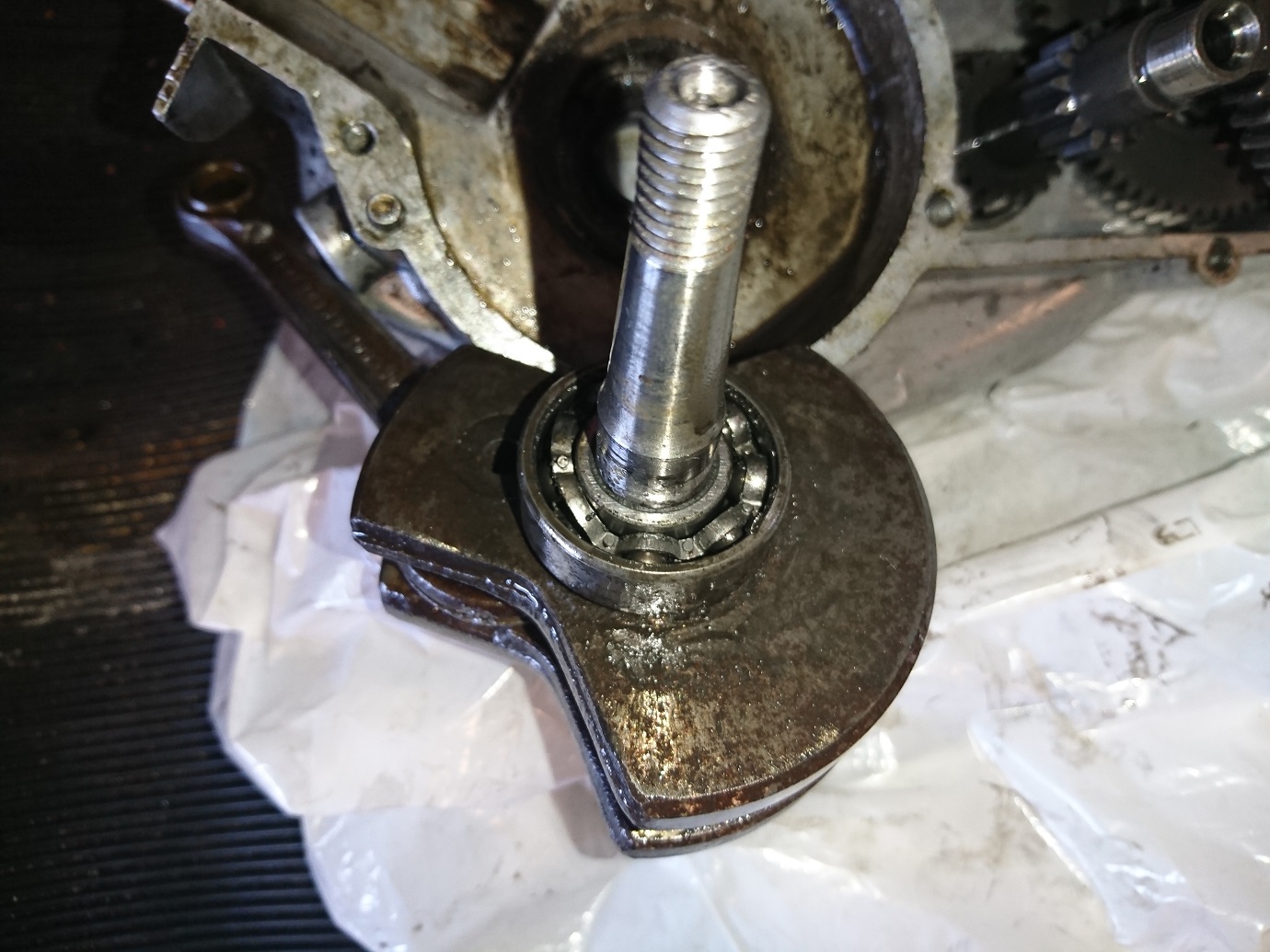Flera av själva lagerkulorna i det berörda lagret ser nästan ut att ha splittrats, stora bitar saknas. Jag har därför varit noga med att spola ur hela motorn invändigt för att bli av med resterna.