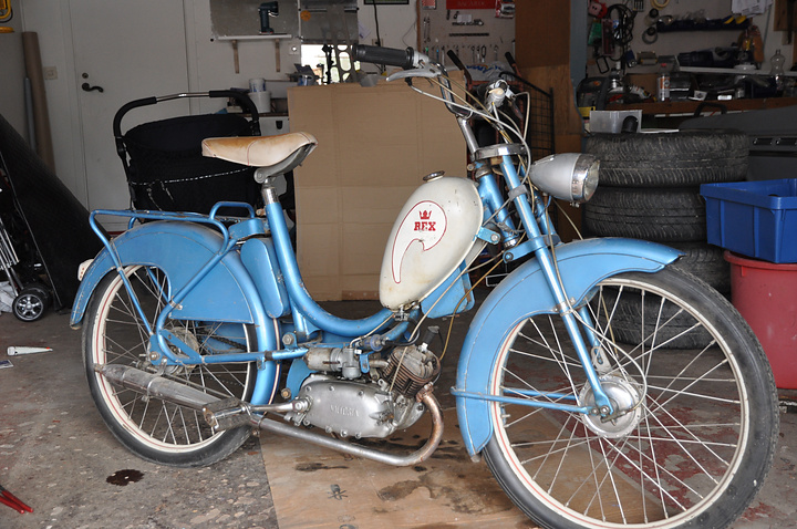 Hängde dit Victoria motorn i ramen och räknade med att det bara vara att koppla upp allt och köra Det blev bakslag direkt, insug och förgasare får inte plats Någon som har bild på hur det skall se ut?