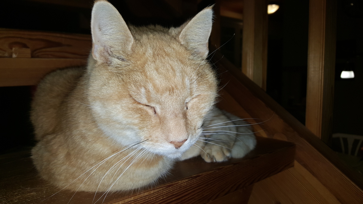 Vår katt med stamtavla, Norska Skogkatten Figaro tar det lugnt i kylan.