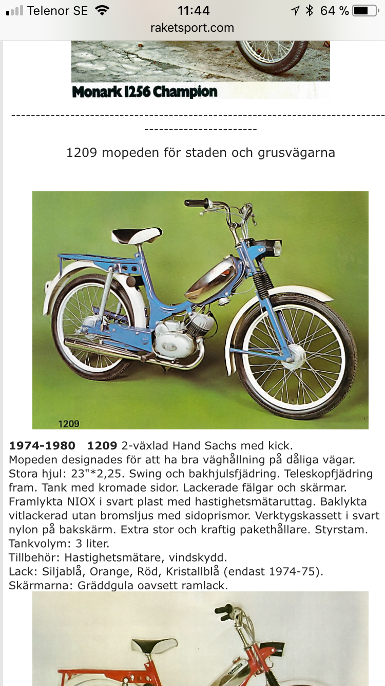 Jag har en kompis som har en Crescent 1209 med Sachs 2 växlad hand och kick.
