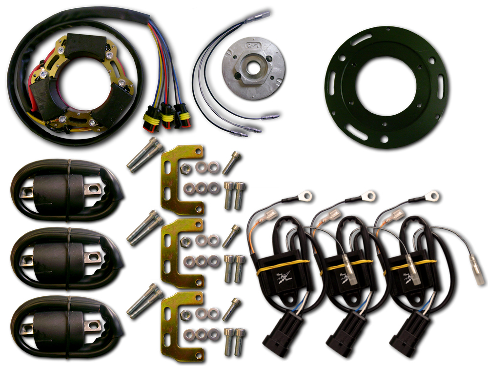 Kawa Triple får ett tändsystem med tre oberoende kretsar för att ge full tändeffekt även på höga varvtal. Det befintliga delar CDI för alla tre cylindrar och ger klen gnista.