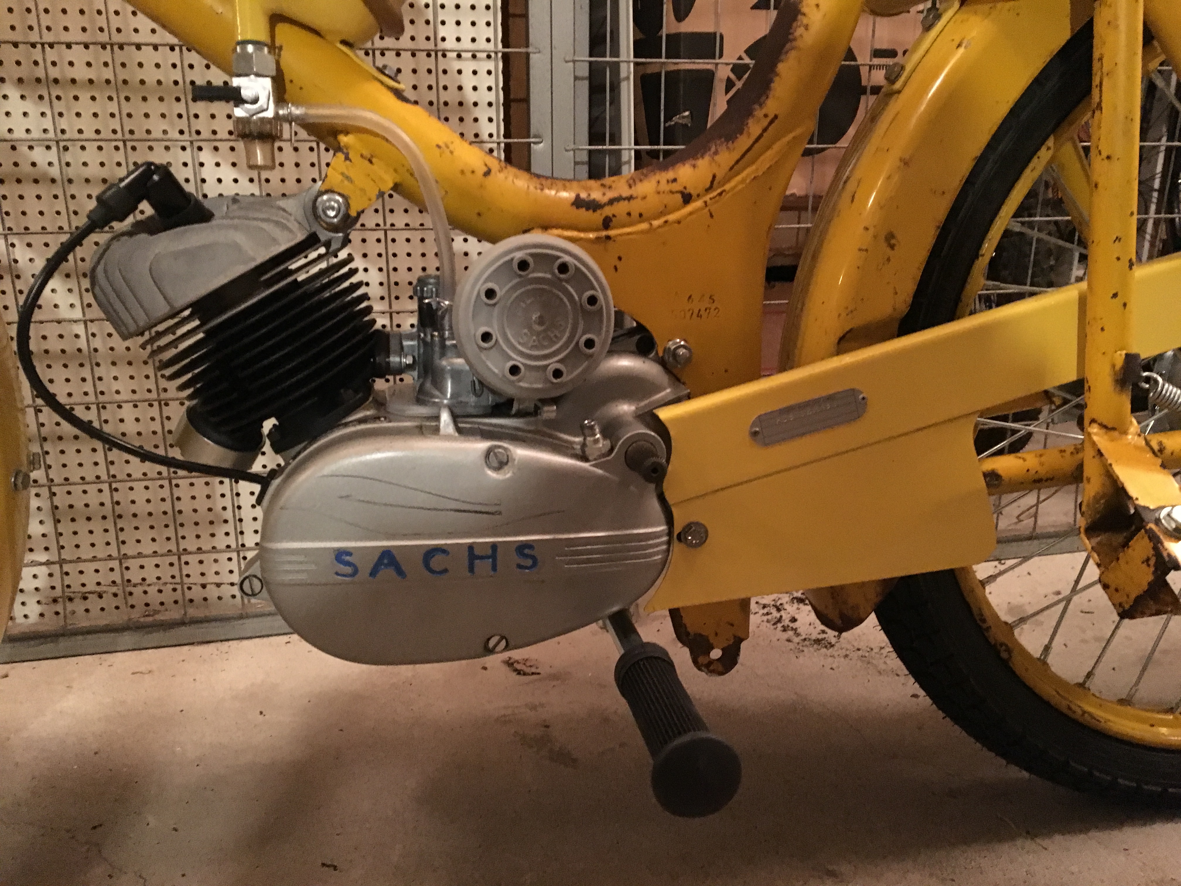 Fick hem luftburken som jag saknade, och fick monterat NOS luftburken (mycket ovanlig) sitter på tidiga sachs motorer med lilla kyrkporten utomlands. Har 3st nu.. har monterat på både lilla och vanliga kyrkporten, resultatet blir en rapp, tystgående och behaglig trimmad sachs. Avskyr sachs bröl o gråburk e för stor för min smak. udda e bra!